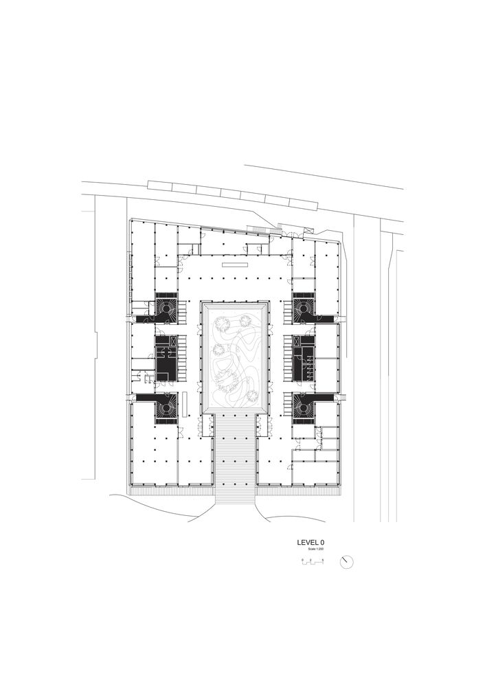 The atrium, with its covered wooden veranda, serves as a recreational area for employees and visitors to take a break. In addition to other meeting rooms available for external parties to rent, the ground floor provides a restaurant, a gym with a café bar, and seating niches for the public.