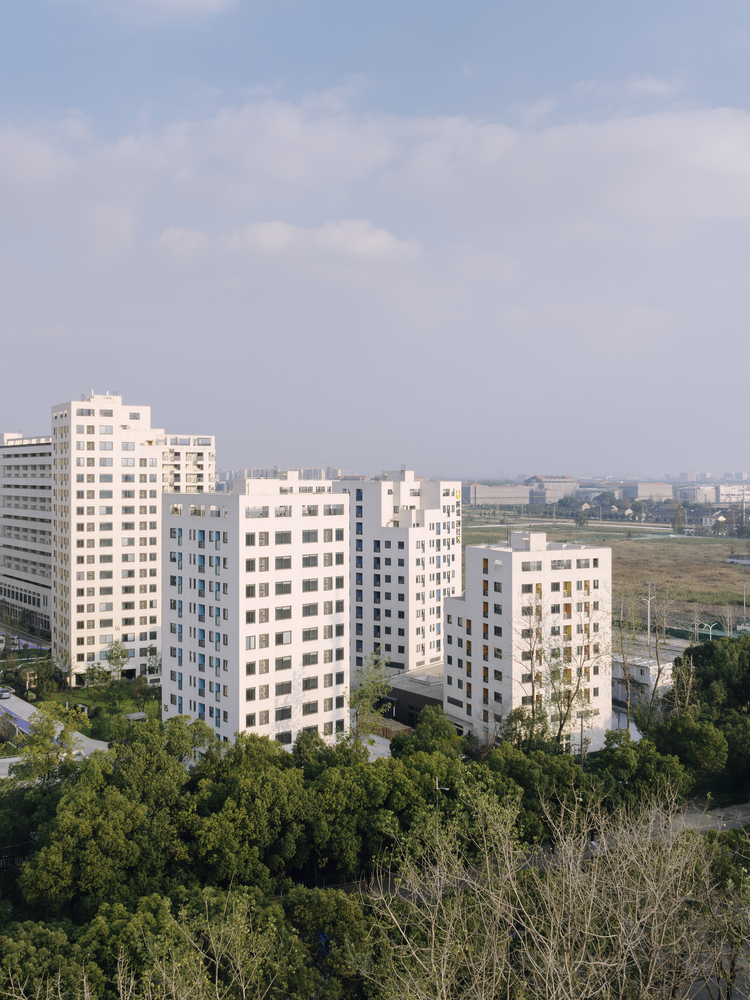 Architects still have to correct them professionally. Change X Community sits on a typical peri-urban Shanghai plot—48,000 m² of land, 2.5 FAR—utterly representative of the city.