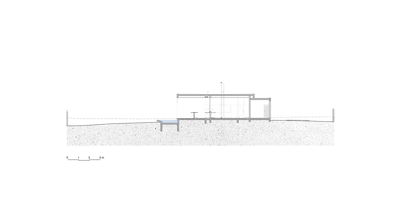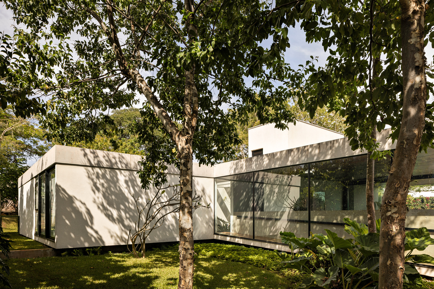 With a single floor and gentle elevations that follow the natural topography, the house features cross ventilation and a connection to the external nature.