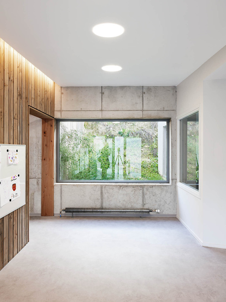 Through the integration of the project into the planted embankment, a dialogue takes place between architecture and the landscape.