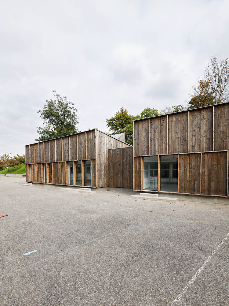 The building is made of timber frame and cladding. The facade work is based on a rational, simple and grid design for optimal integration into the built context.