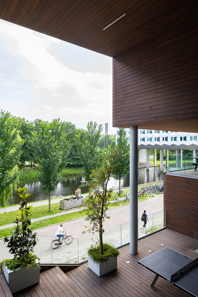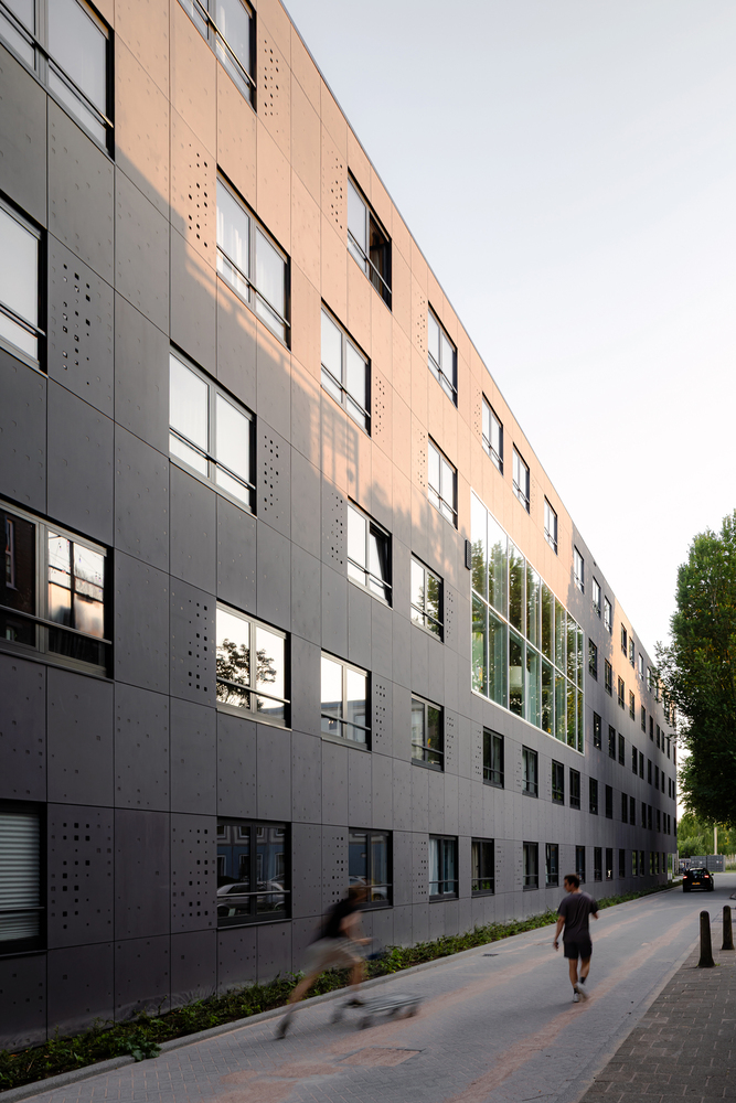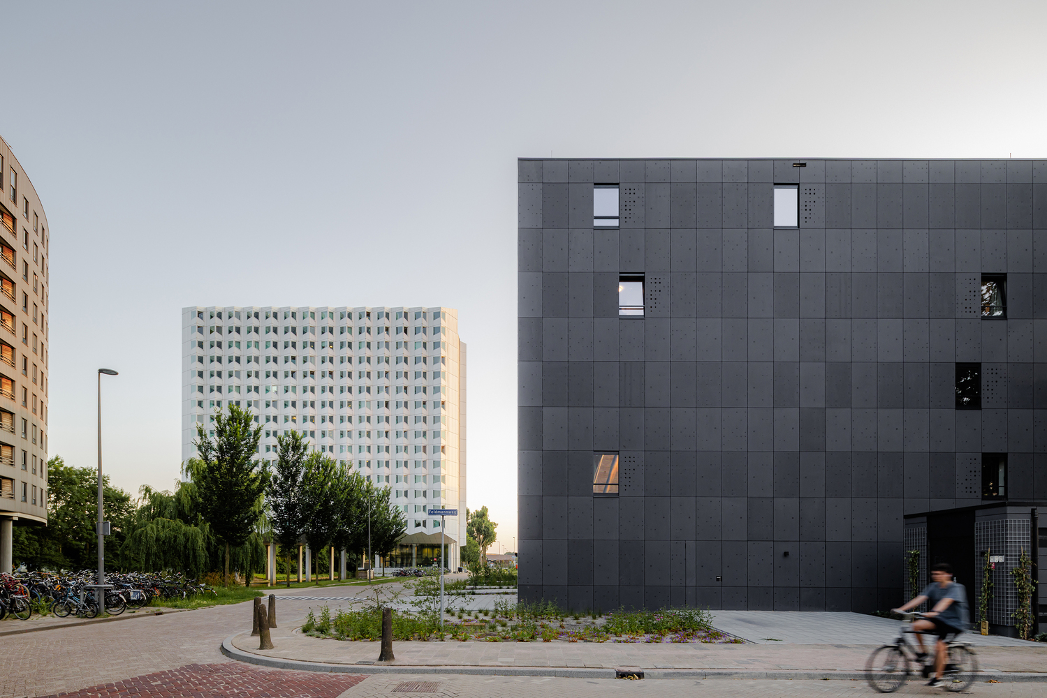 Along Balthasar van der Polweg, the building breaks away with Carel Weeber's rigid urban grid, presenting itself as a surprising new object in the area — one that draws in both residents and the wider campus community.