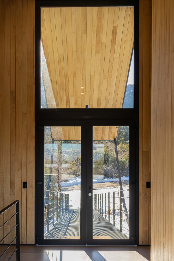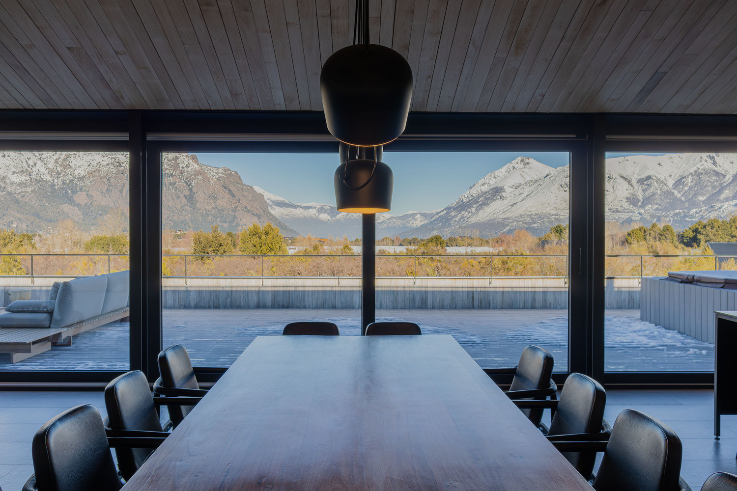 Inside, a wooden "box" creates a warm atmosphere reminiscent of traditional Patagonian homes.