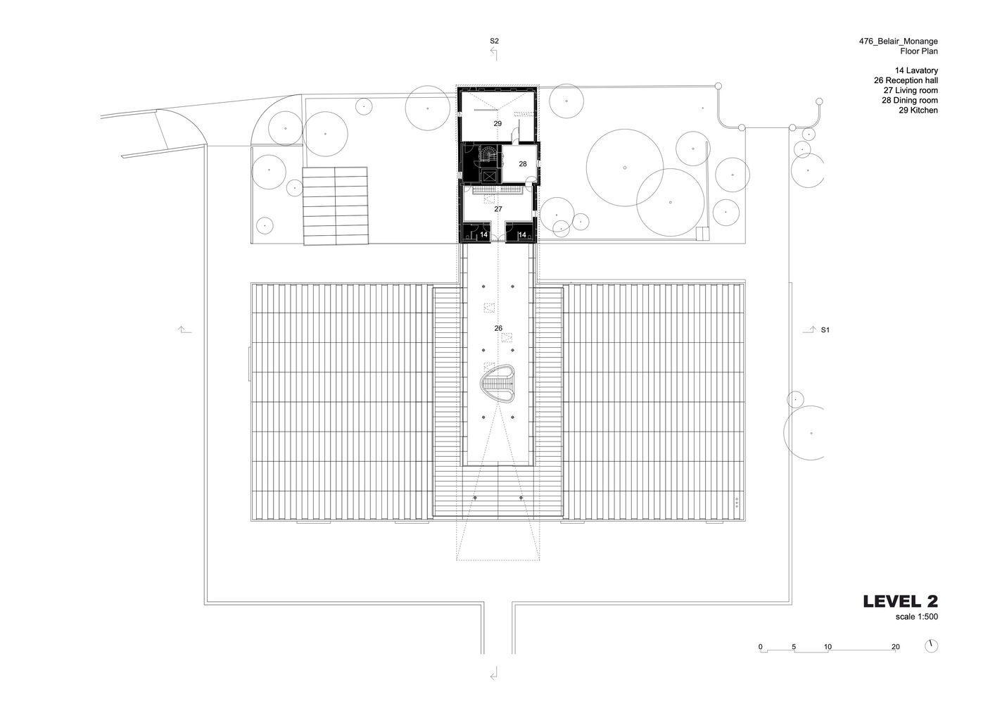 The link between the two mineral monoliths, one in stone and one in concrete, is strengthened by the concrete roof of the reception room. This new roof extends the existing roof of the south wing of the house above the cellars, in the direction of the vineyards and the Dordogne valley.