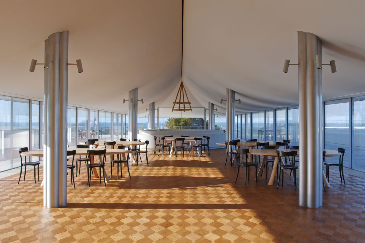 The concrete beams of the roof are a reminder of the Roman furrows, an ancestral technique of the culture of the vine of which certain traces are still present in Saint-Émilion. Some of these beams have been partially hollowed out to allow for natural air ventilation and free-cooling of the workspaces in summer.