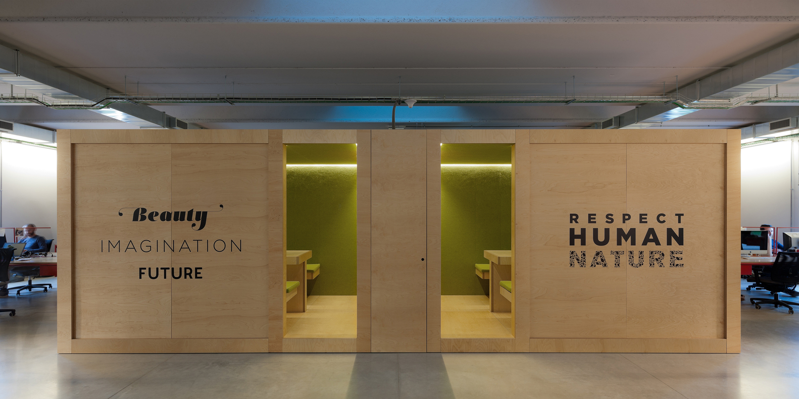 Interior spaces are characterized by light partitions and custom-made modules that allow flexible and differentiated workstations:
