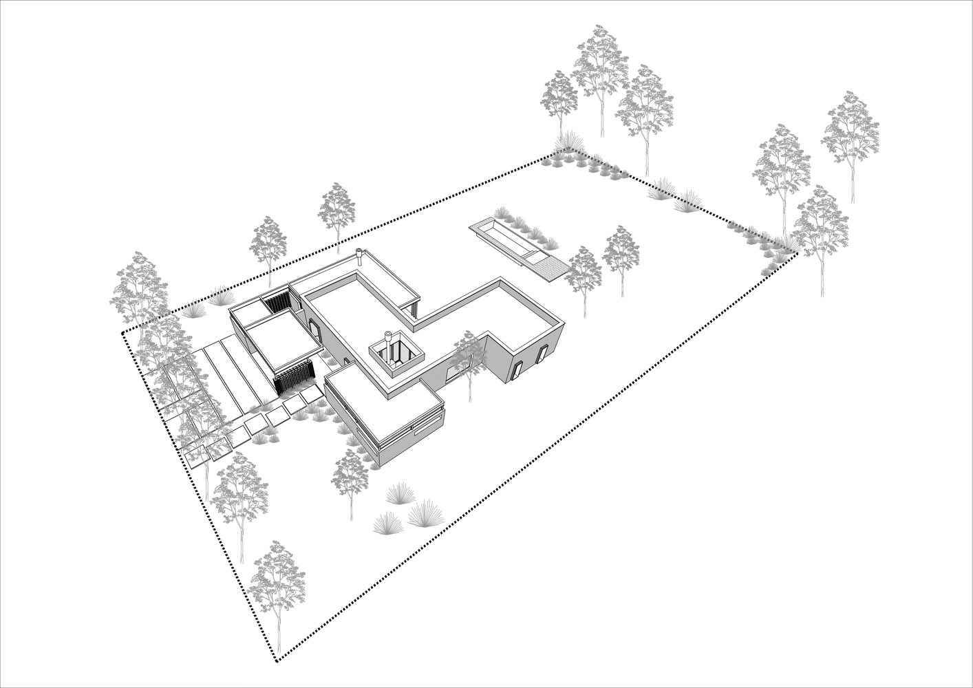 An internal patio acts as a core that articulates the circulation. All spaces maintain a visual connection with the exterior.