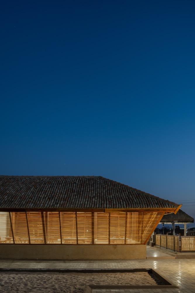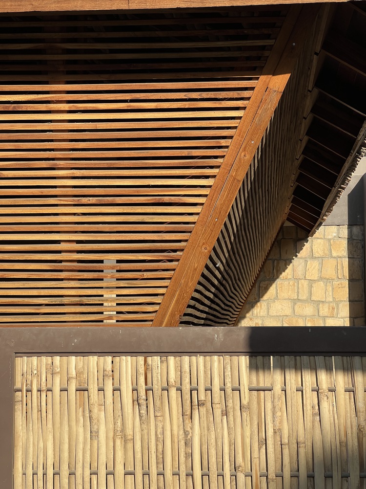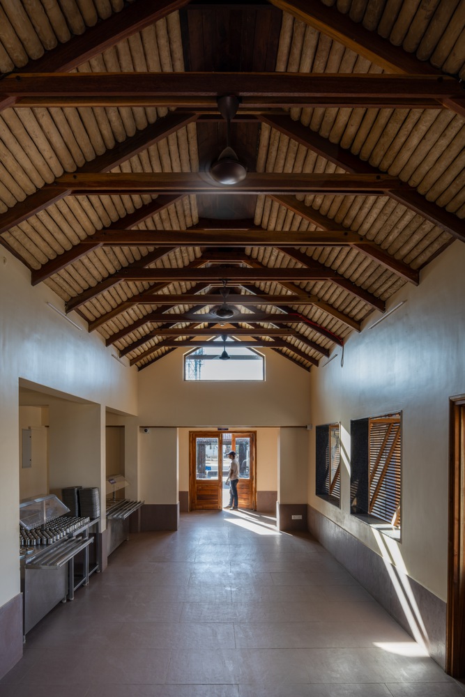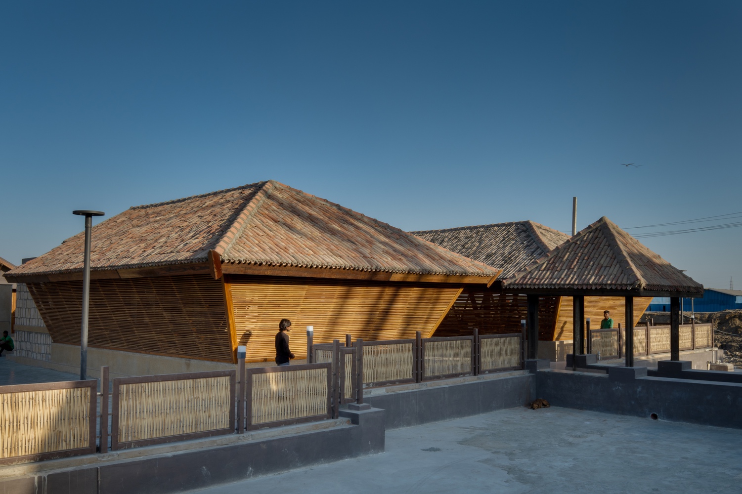 The roof, a key element of the design, is constructed from upcycled timber salvaged from ship-breaking yards. This sustainable approach extends the lifecycle and repurposes valuable materials.
