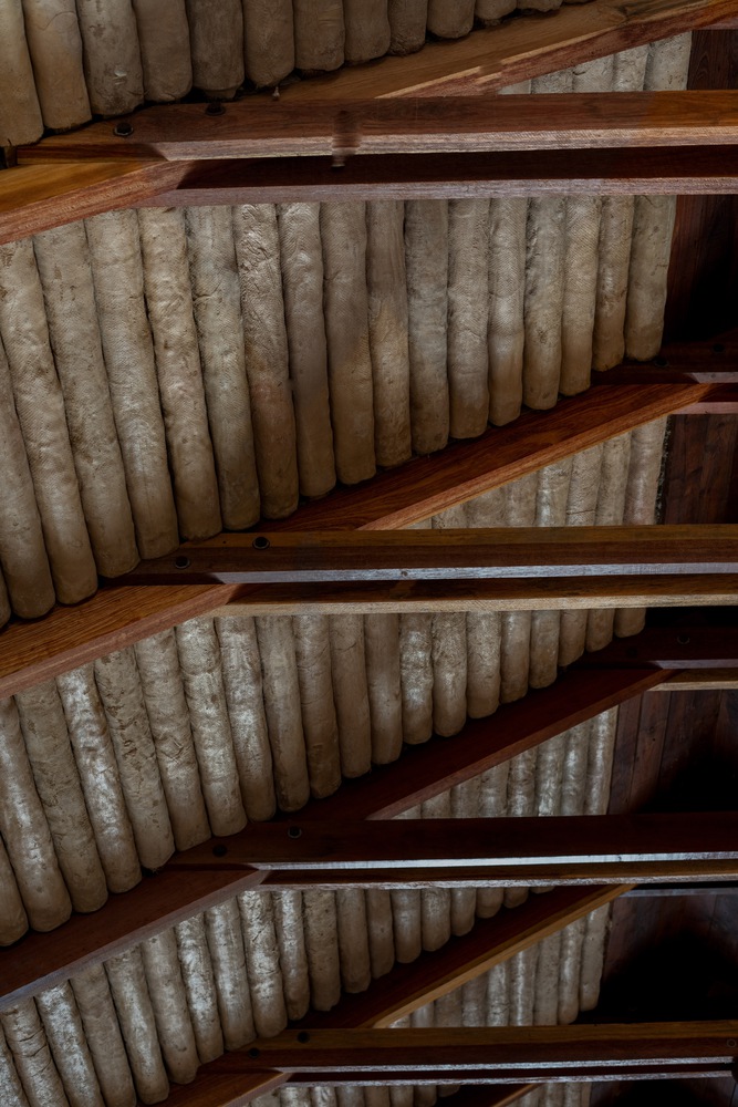 The mud rolls not only provide insulation but add a beautiful, handcrafted texture to the roof with pastel earthy hues.