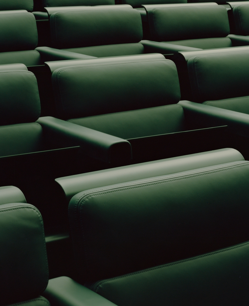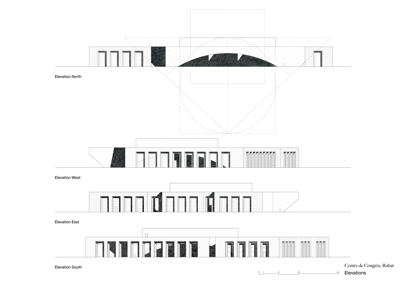The space between the two forms accommodates various smaller auditoriums, meeting rooms, bars and cafes, circulation, and services.