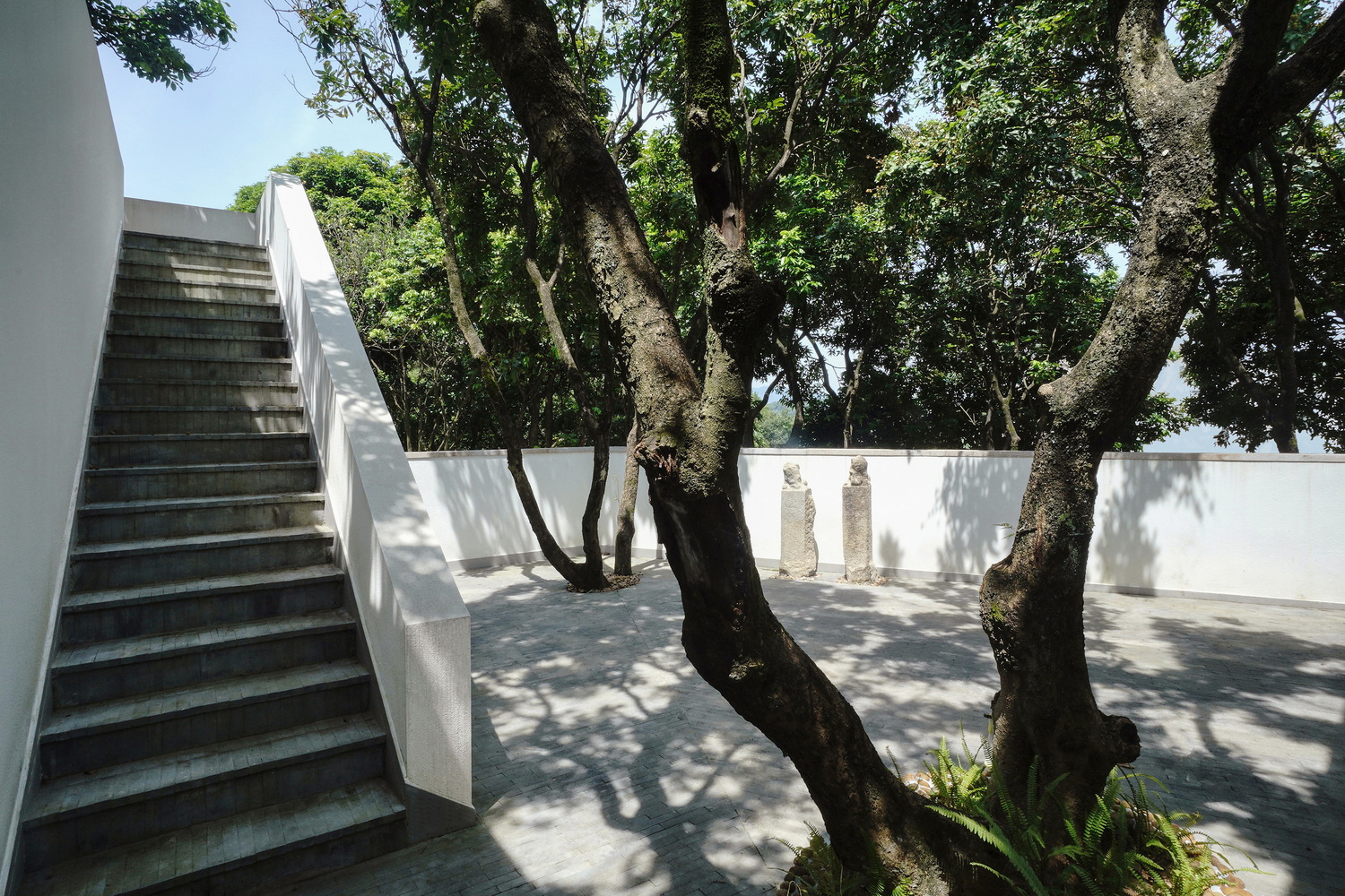 Finally, the roof terrace recovers the ground occupied by the building, bringing people closer to the tree canopies. In the season when longans are ripe, you can reach out and pick the fruits hanging just overhead.