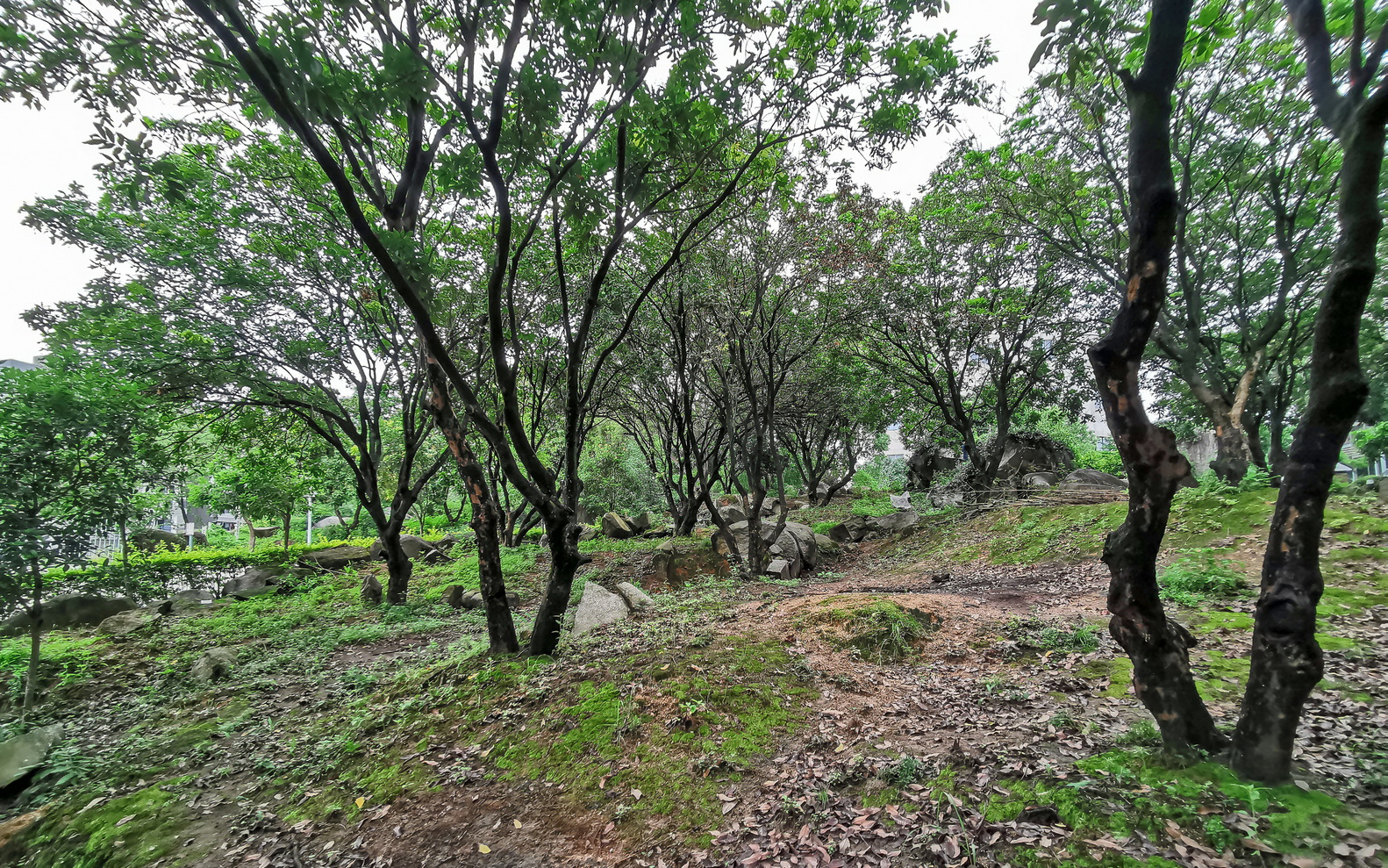 The longan trees are the main characters of each courtyard, while the building appears to be containers for the trees.