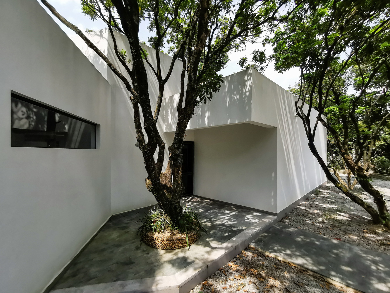 The principal building materials are also the most common in the local area, including white interior and exterior walls, indoor cement floor, grey bricks in the courtyards, and pebbles of similar colors to longan on tree planters and the roof terrace.