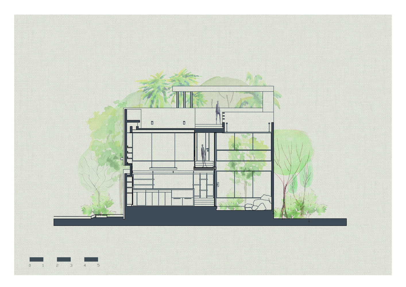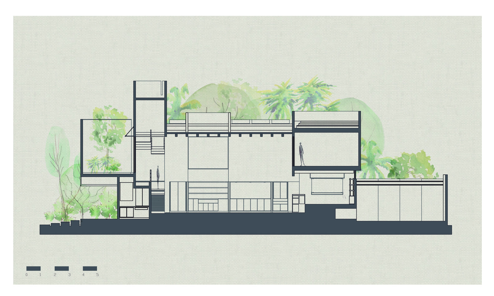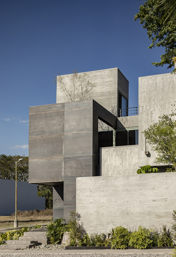 Between the green of nature and the distortion of its pure forms, a building with a strong presence and character rises in Colima.