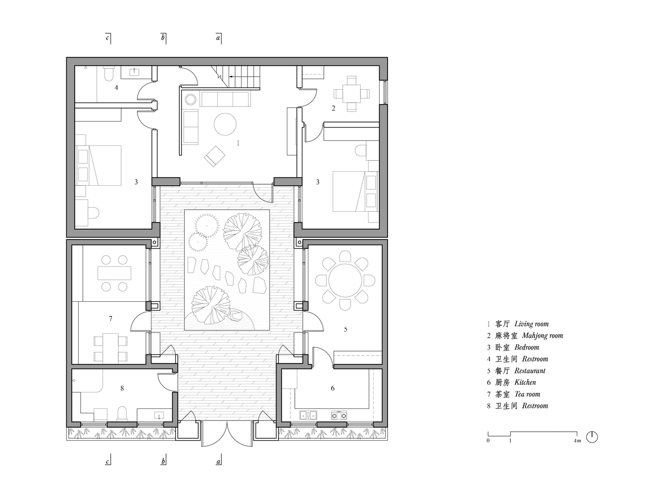 Courtyard is the core of design, it connects all the spaces. Before renovation, there was no connection between the principal and wing buildings, between interior and exterior, and no view for landscape in the courtyard.