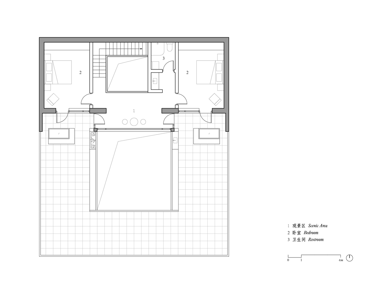 We want to create a house that allows people to sit down and chill at any spot, so that they could enjoy the view of courtyard, sky and mountains as time slowly flies, forgetting all the troubles of outside world and relaxing thoroughly.