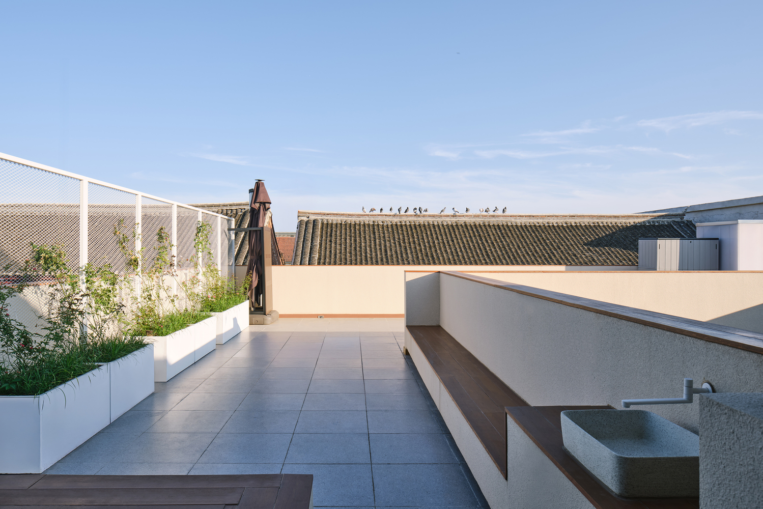 As the principal and wing buildings are connected, the roof terrace is enlarged, and is accessible from the second floor of principal building, which makes the terrace a great spot for views of mountains, sunrise and sunset.