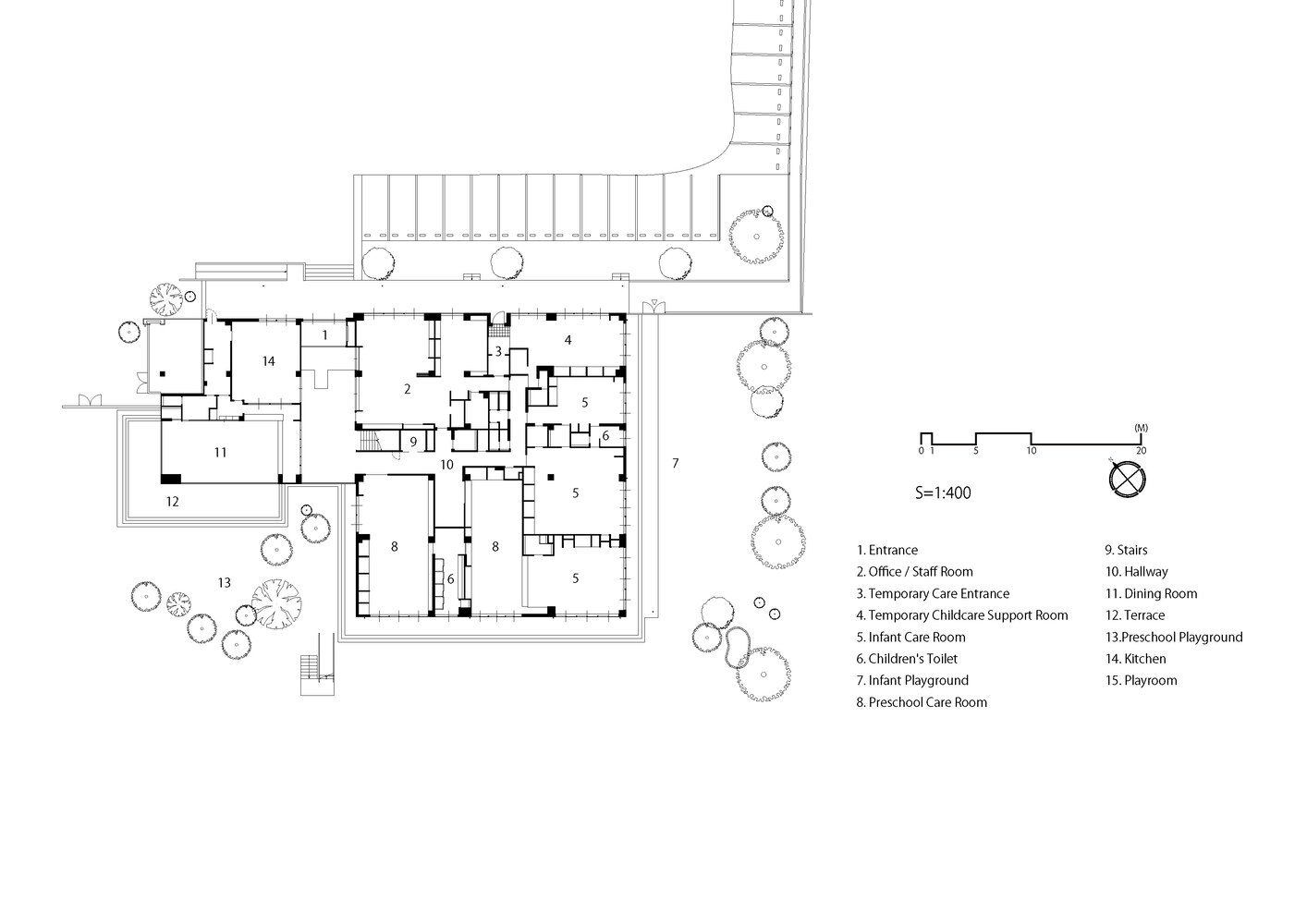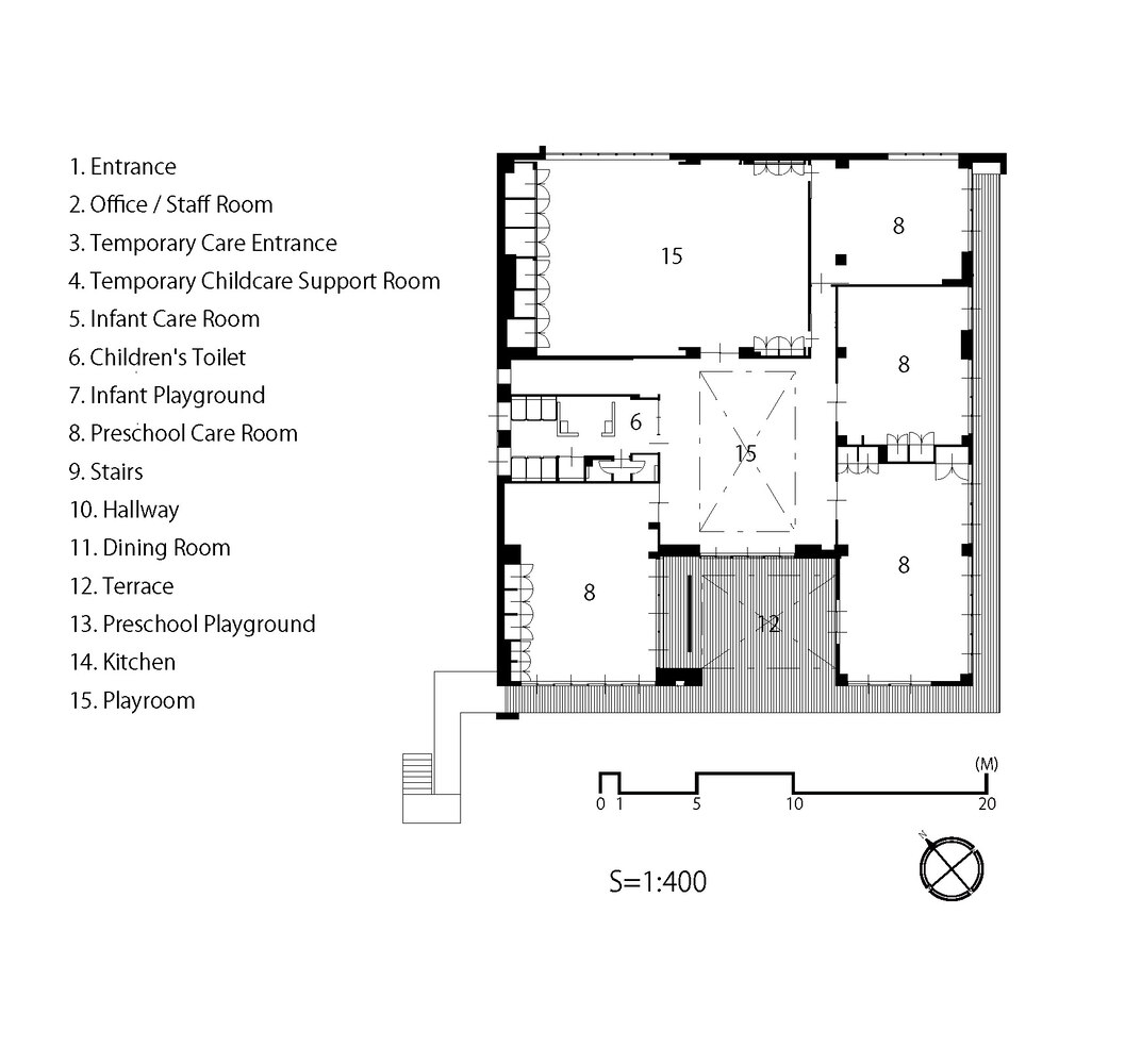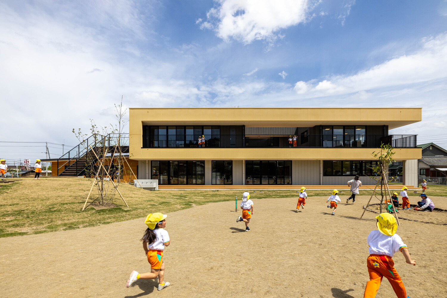 The new SG Kindergarten and Nursery was constructed by the consolidation and privatization of four dilapidated public preschools in Katori City, Chiba Prefecture.