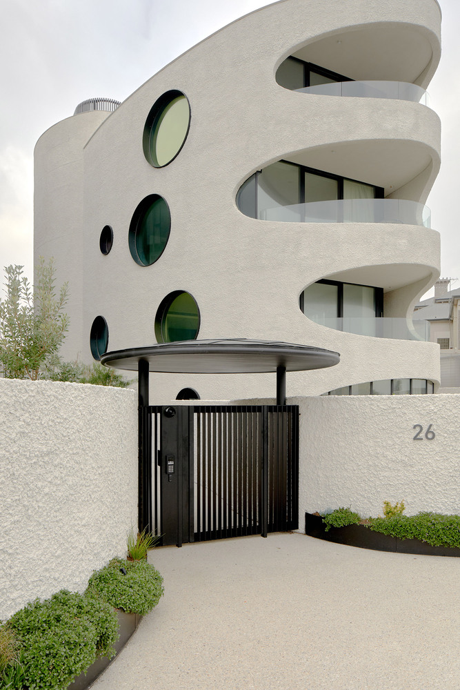 From the beach, the apartment blocks follow the existing urban grain, with drops in height from north to south. This reduces their bulk, respecting the beachfront context of individual low-rise dwellings.