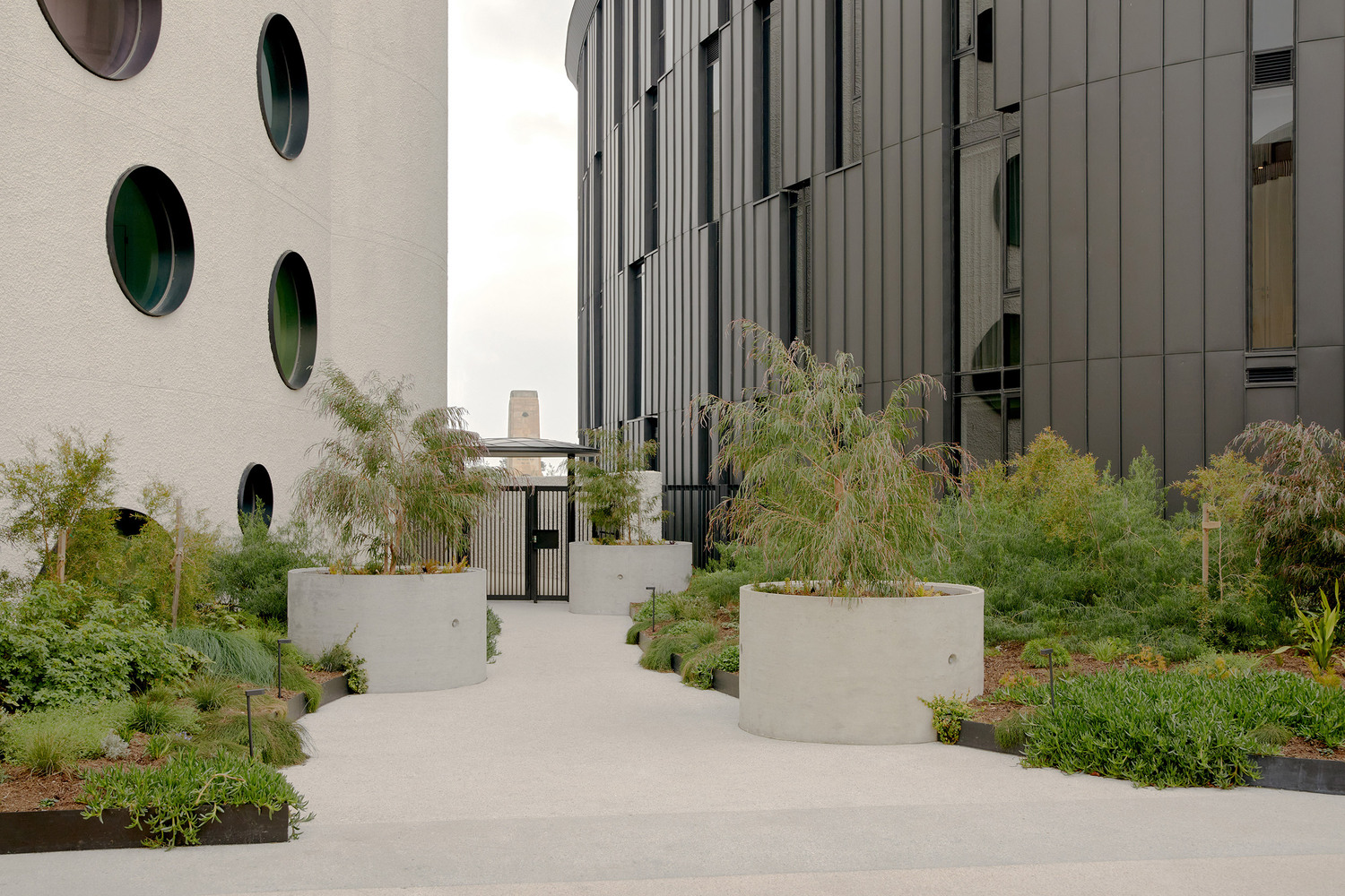 More than half of the site has been landscaped to create a lush green spine between the townhouses to the rear of the site and the two distinctive apartment blocks at the front. This also aligns axially with the Green Point cenotaph memorial.