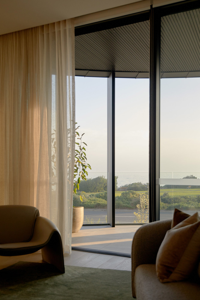 Instead of filling the site, a series of sculptural pavilions have been carefully composed and positioned within a new coastal garden.