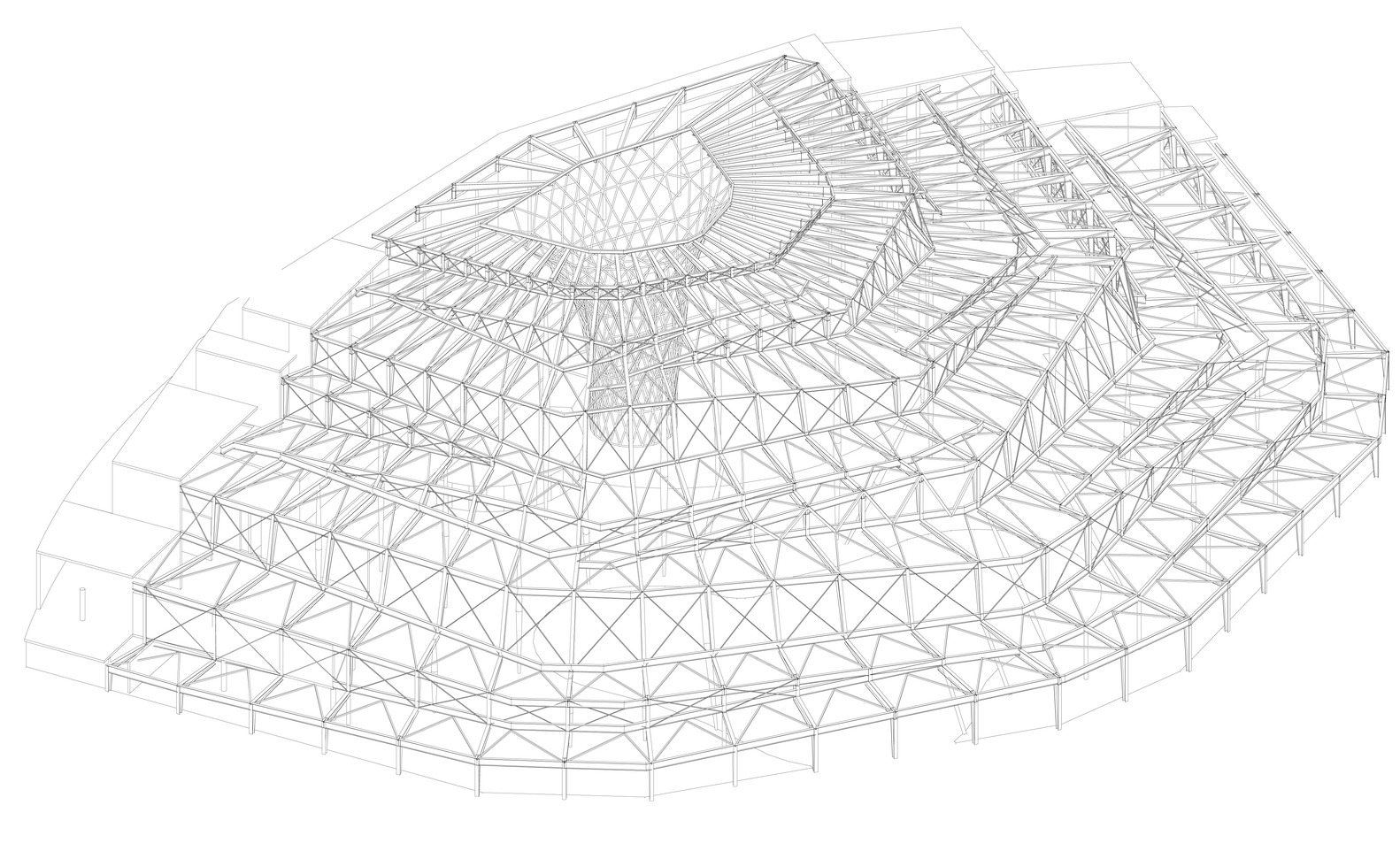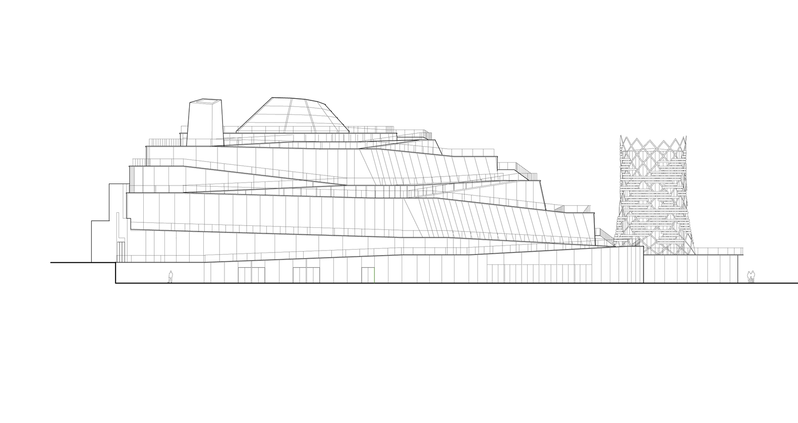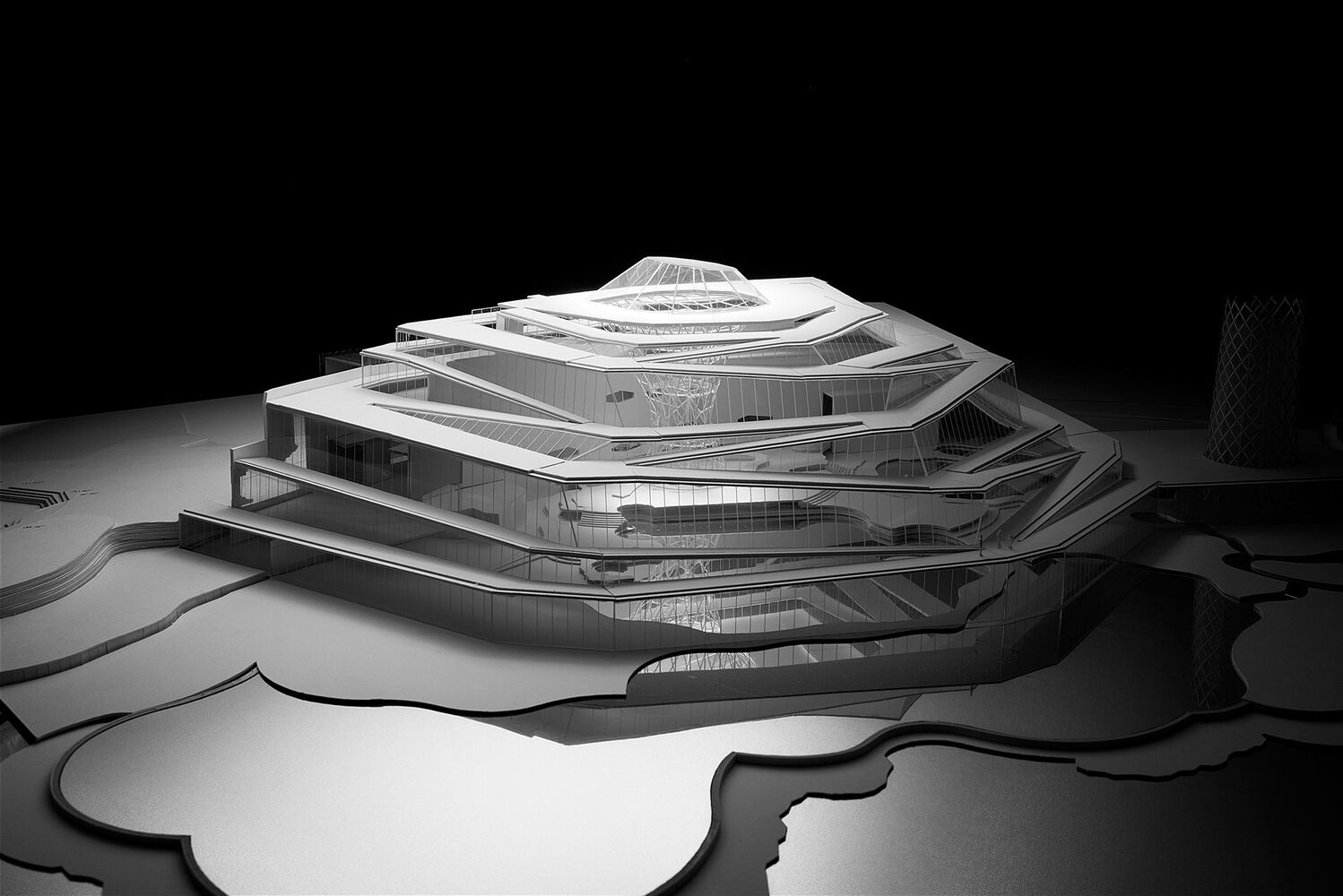 Like an origami sculpture, our proposal for the aquatic park resembles an unfolding landscape, culminating at around 35m: it is a built landscape, rising into the sky.