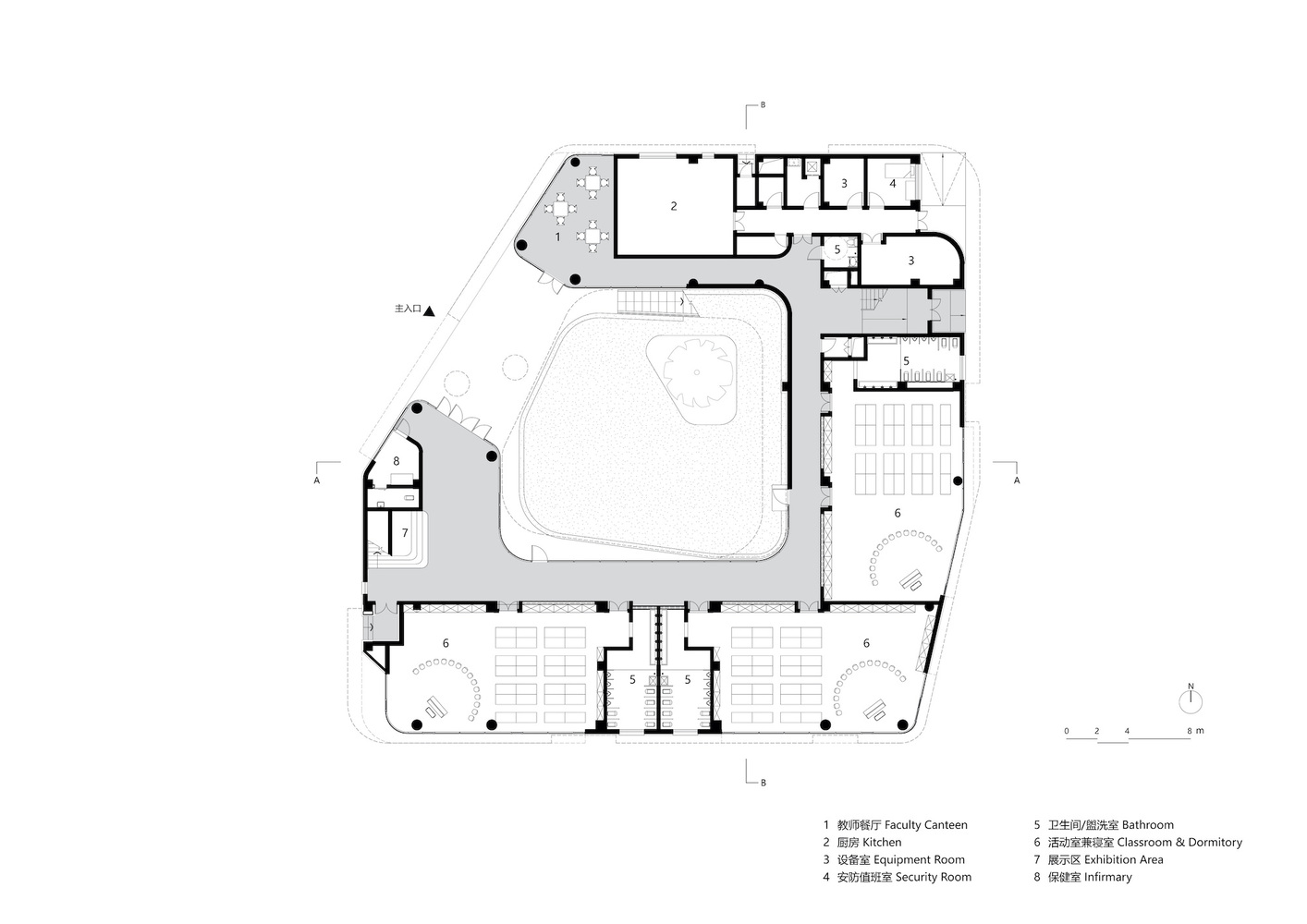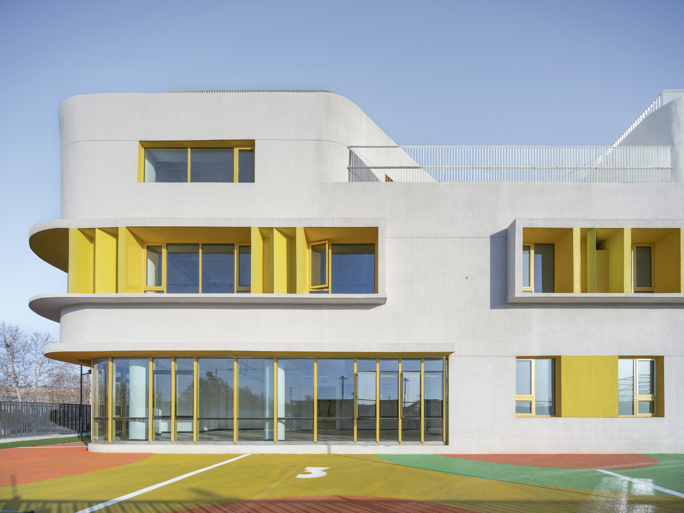 Located in Gaoliying Town, Shunyi District, Beijing, this circular, six-class kindergarten is close to Beijing Capital International Airport and serves as an educational support facility for an affordable housing complex in the city's suburbs.