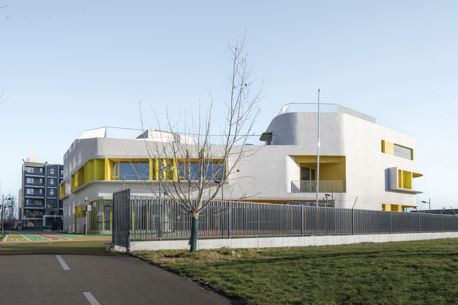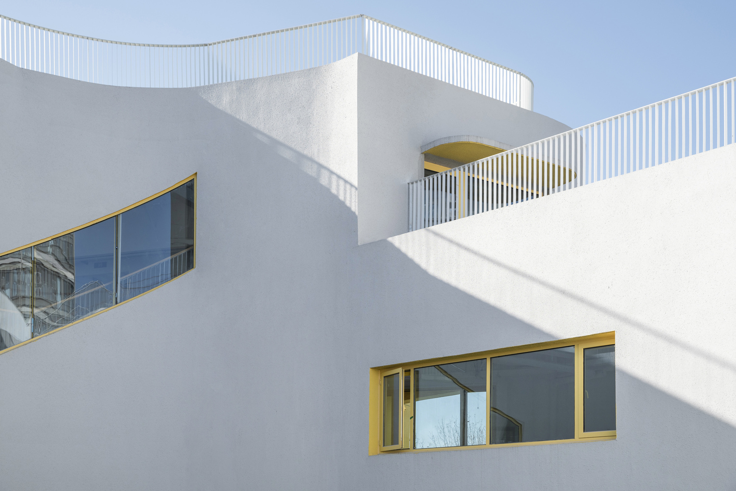 This classic vertical three-stage architectural language, combined with the vibrant yellow color scheme, imbues the kindergarten with a childlike charm. The rounded corners also enhance the building's sculptural and poetic quality.