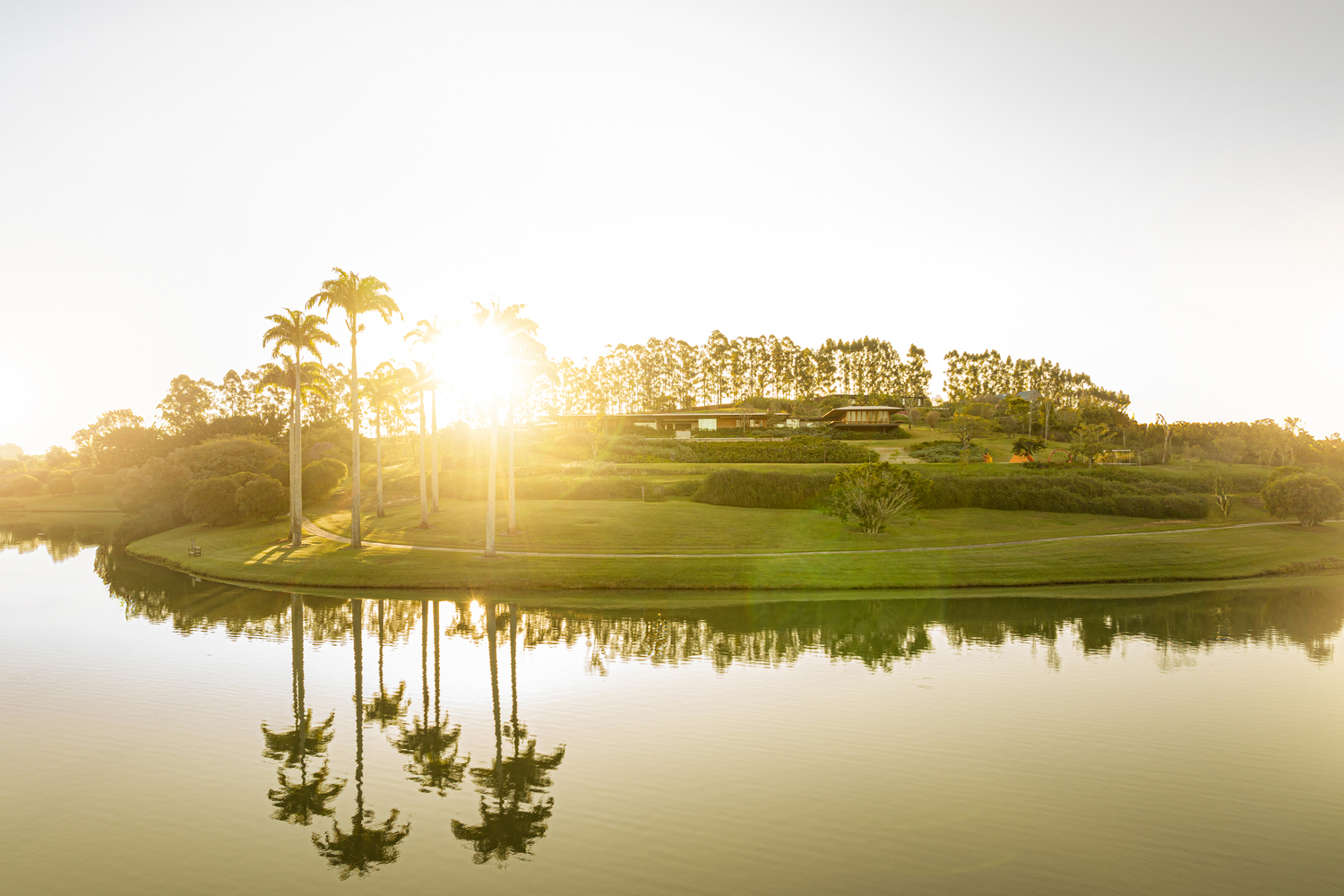 Located on a plot of land overlooking a large lake in the outskirts of São Paulo, the TM House was built for a mother and her two daughters. In a non- orthogonal implementation, it was designed to fit into the contour lines of the sloping terrain.