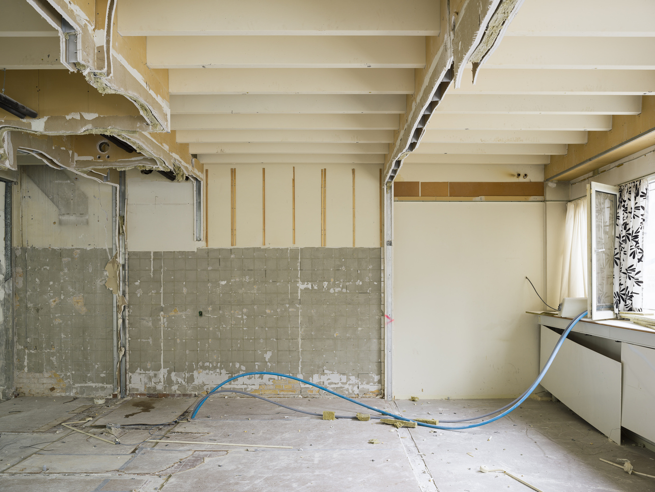 Lightweight walls and built-in furnishings were removed, while other elements were relocated.