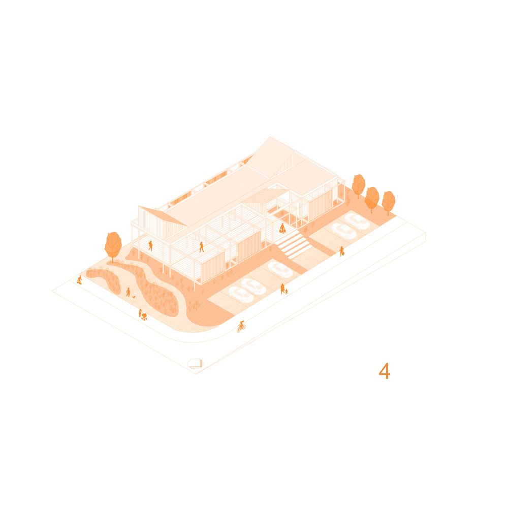 The temporary condition responds to its temporary function: it will remain active during the construction of the complex, and once its purpose is fulfilled, it will be dismantled to make way for new spaces.