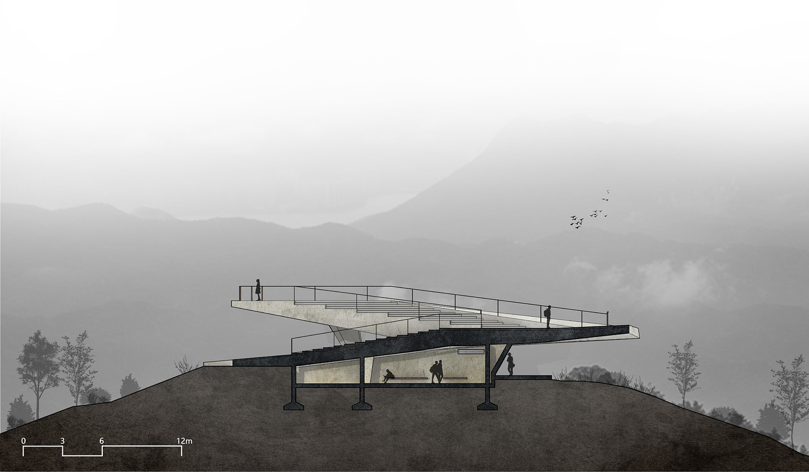 The project brief called for an observation station to provide rest, shelter, and viewing space while minimizing environmental impact.