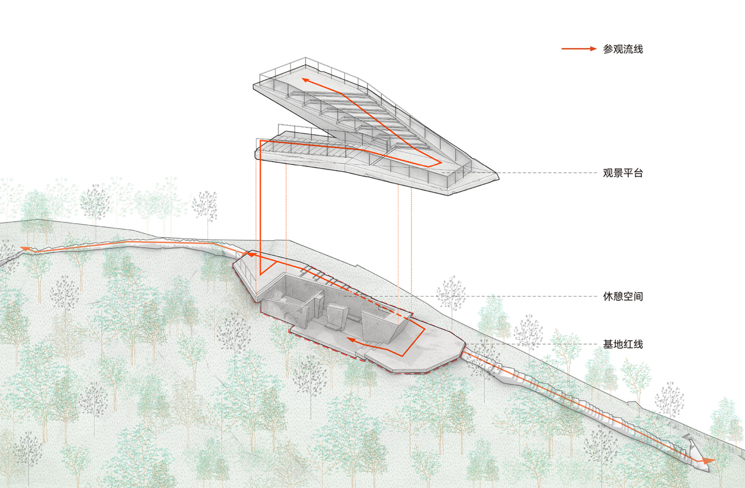 The design strategy was defined by the principle of "repair rather than build." Rather than introducing a conventional landmark, the project adopts a low-intervention, "de-architecturalized" approach.