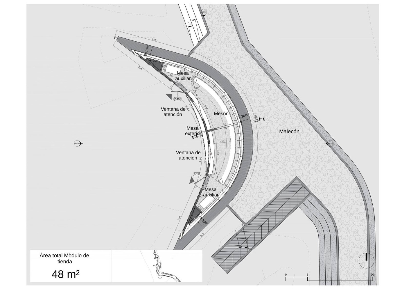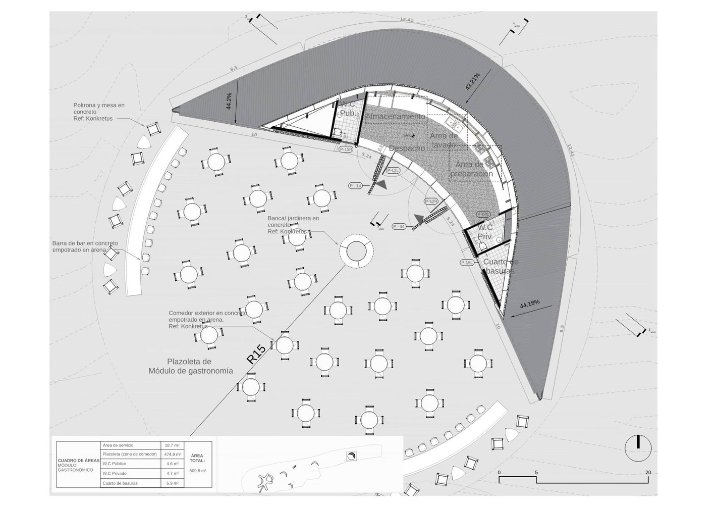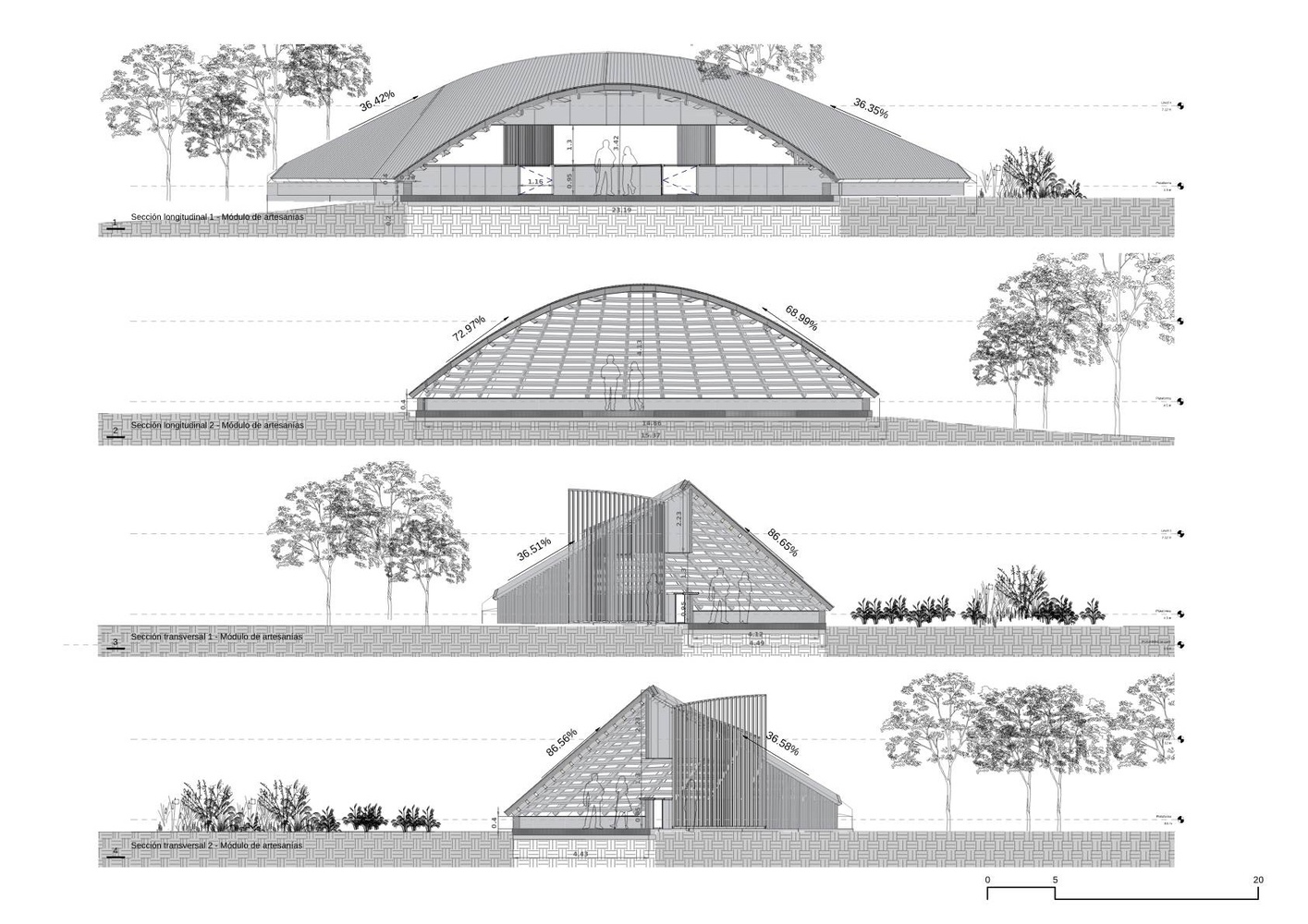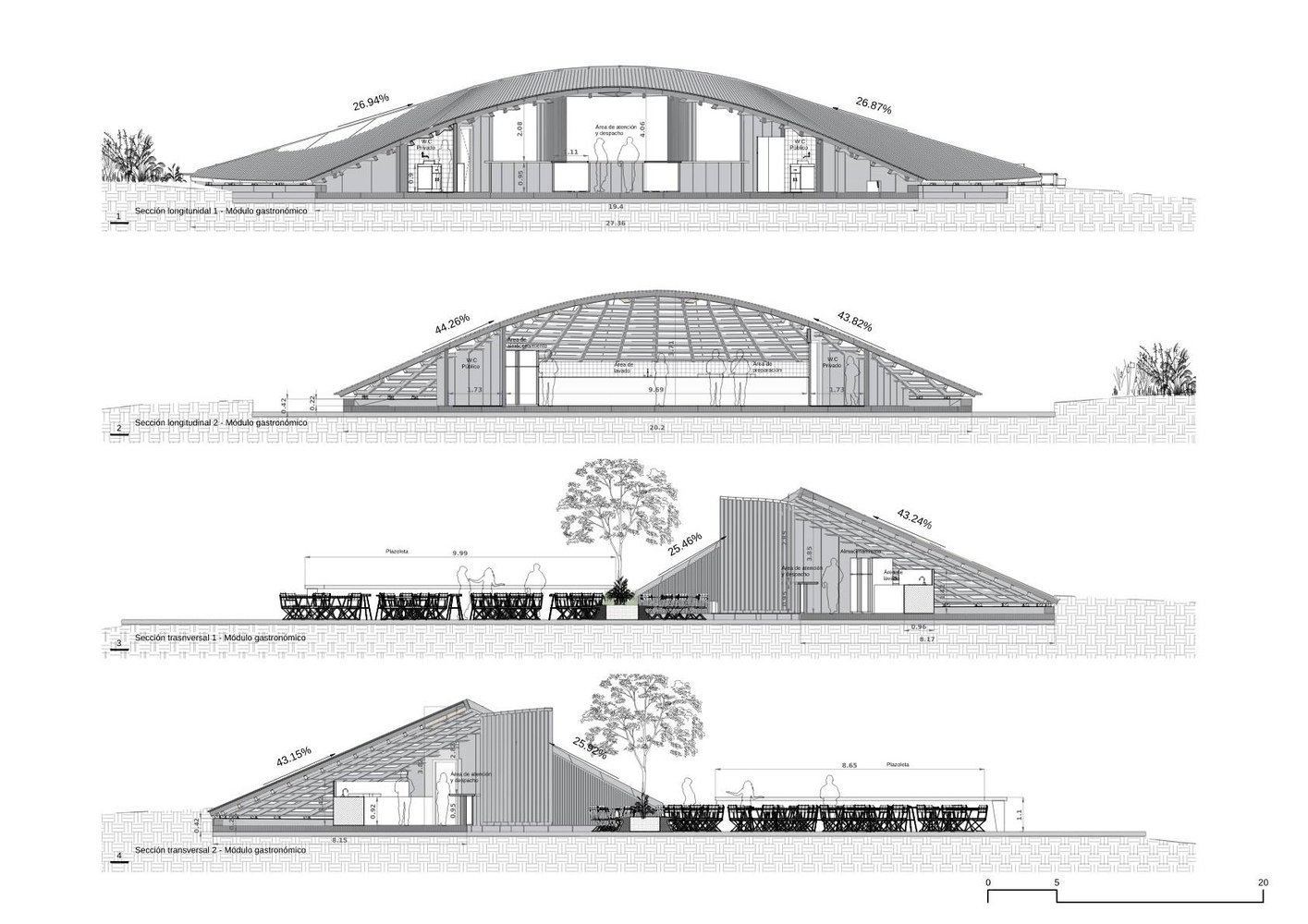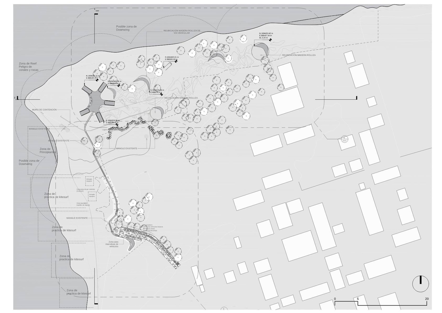 These dunes also serve as decorative elements that introduce vegetation and pathways using natural elements from the environment, and provide spaces for commerce and culinary culture.