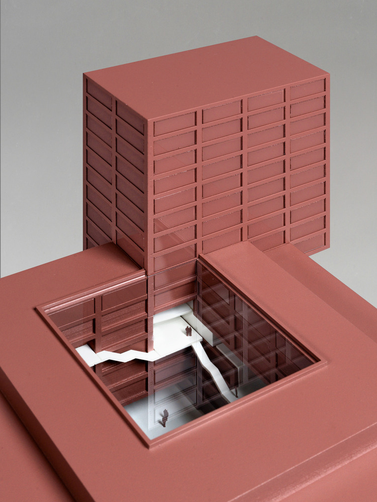 The new build thus replicates the design of the surrounding square using stairs and terraces in the interiors.