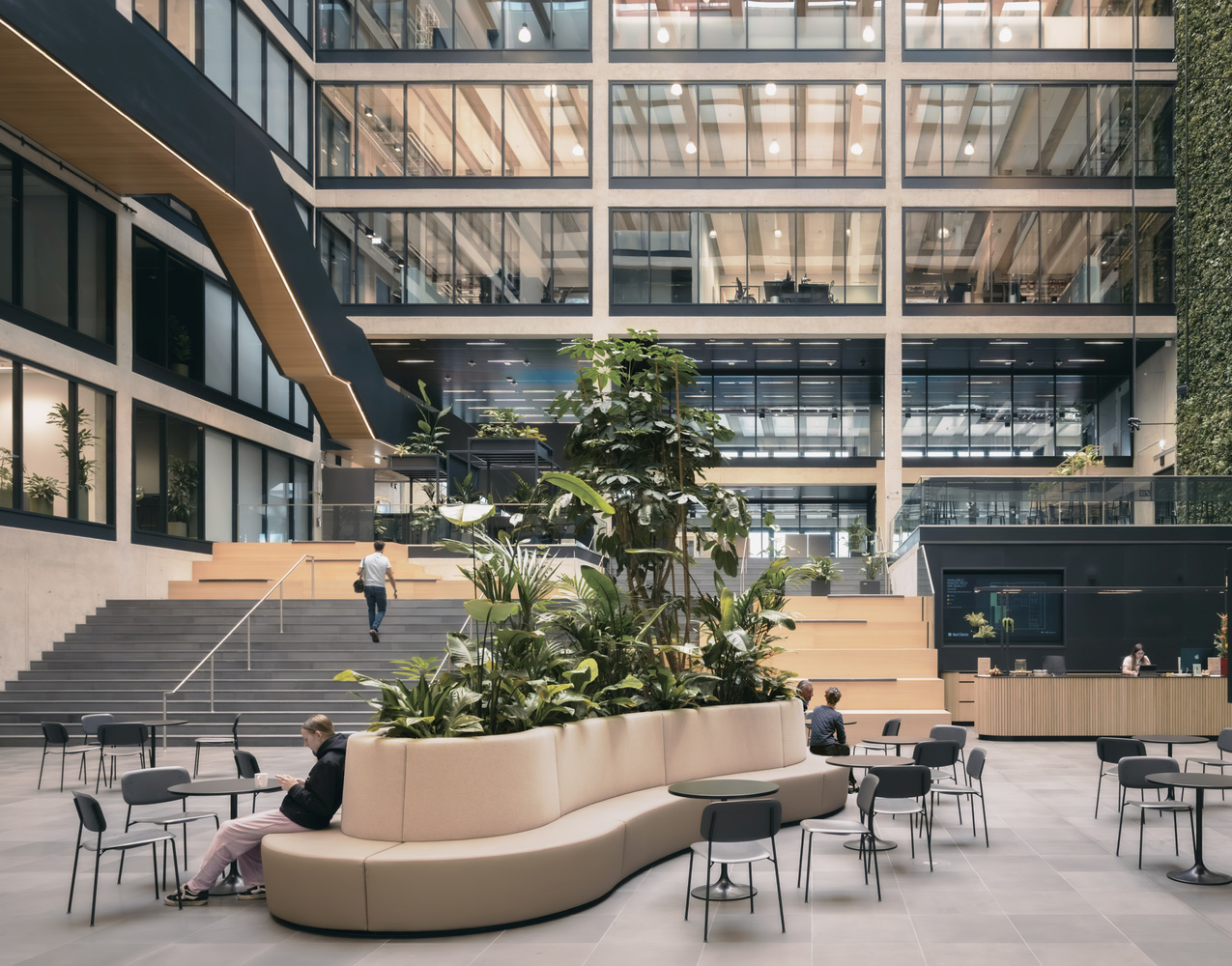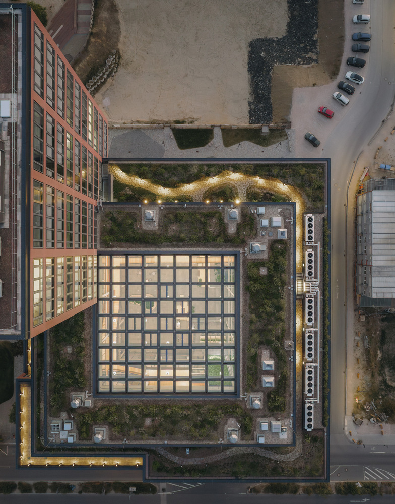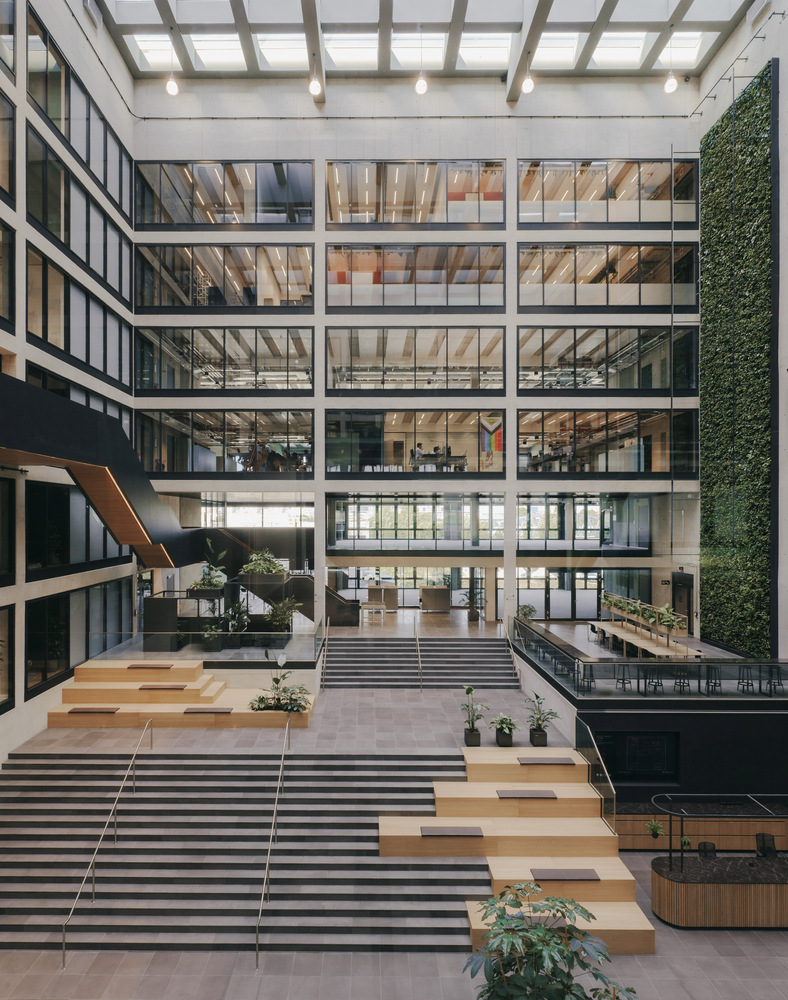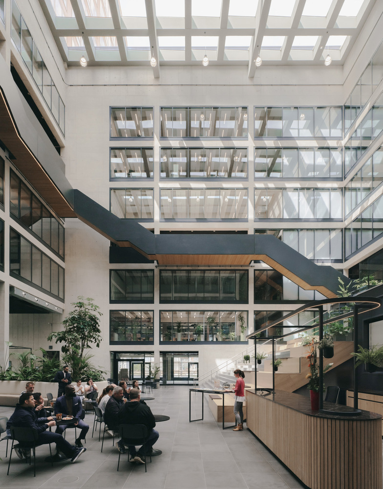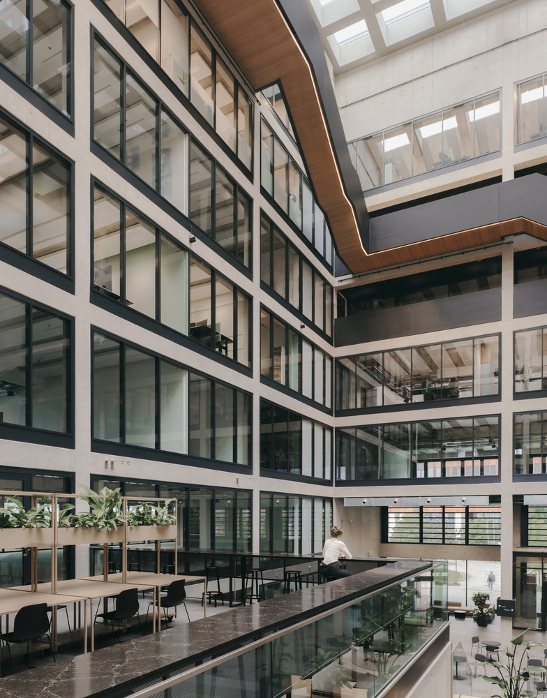 This energy-efficient office building actively fosters interaction and collaboration by bringing its users together while also being open to visitors and locals.