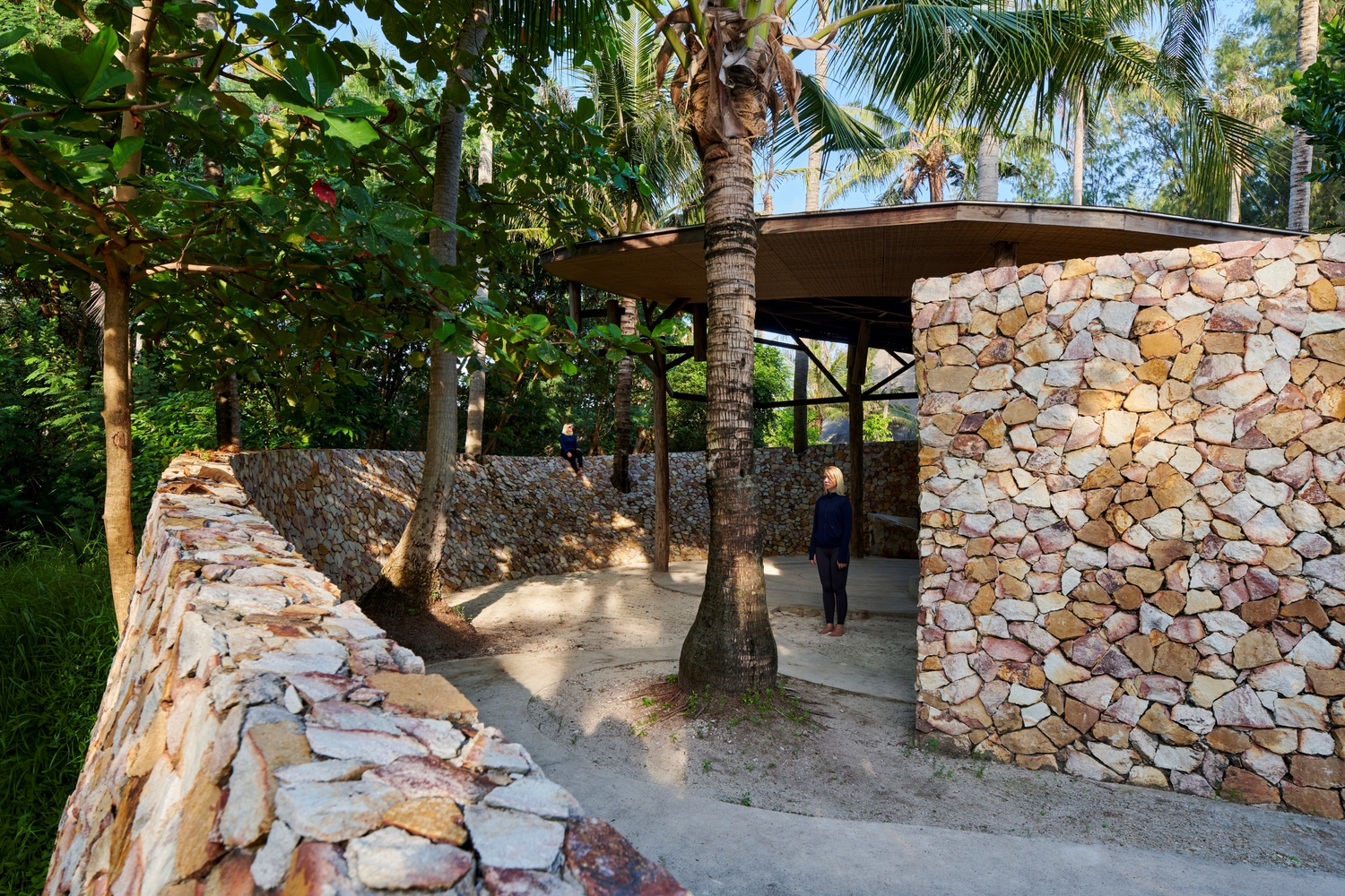 To provide users with an unforgettable tactile experience, materials that reflect the aesthetics and vibes of the island, such as reinforced in-situ rammed earth, timber, and locally sourced natural limestone, were used in unconventional ways to complement the serene beauty of the existing landscape.