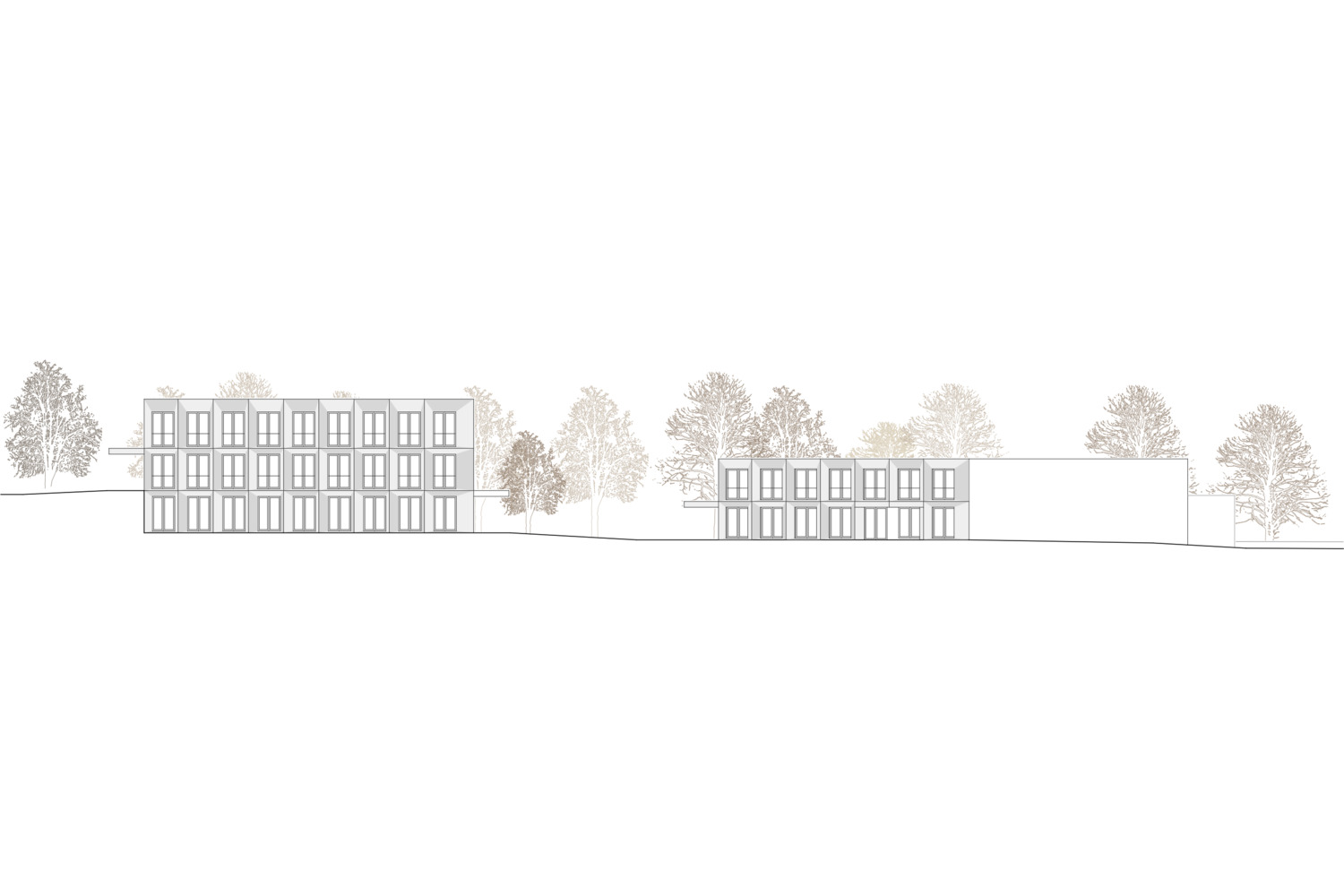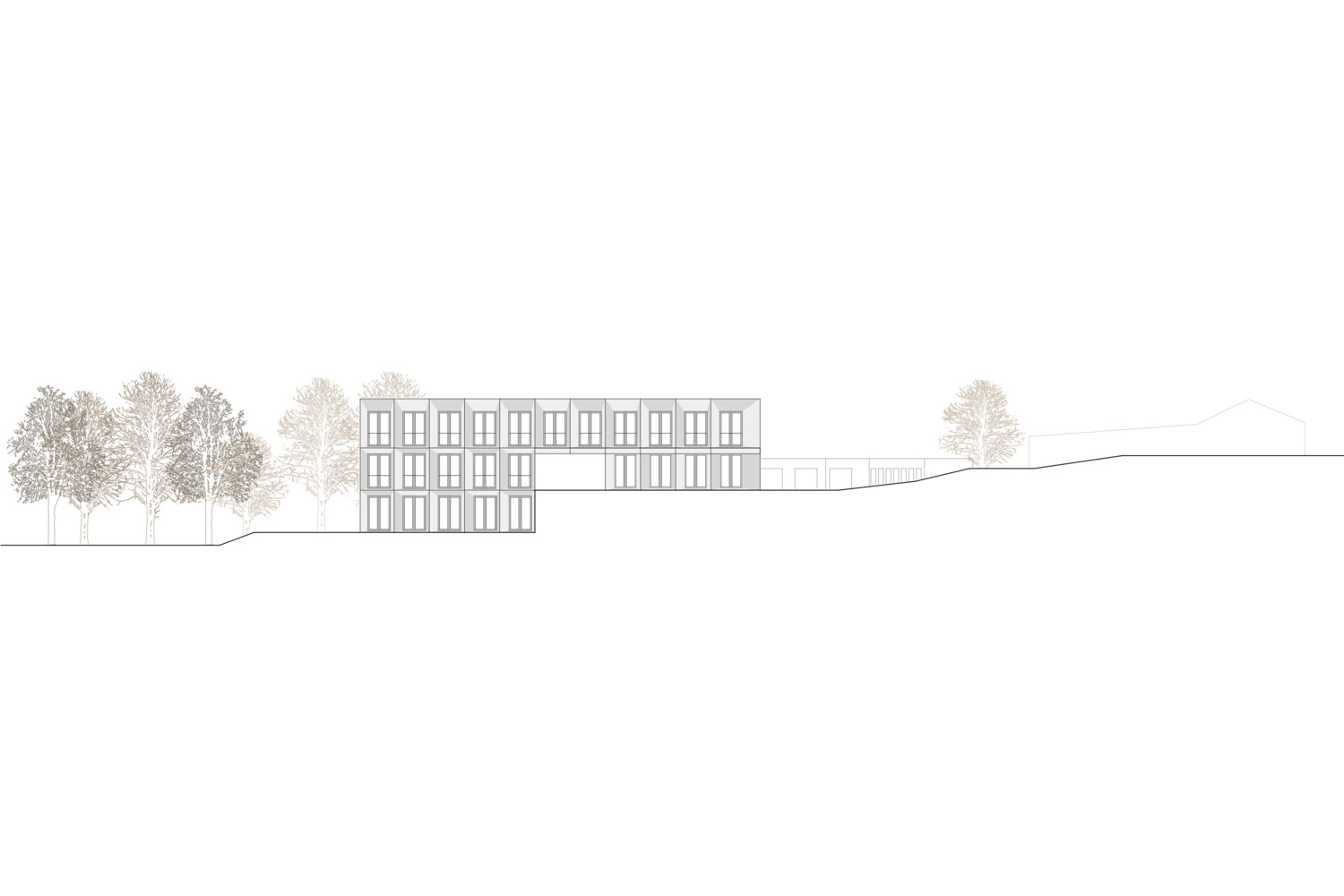 Each building volume is oriented to the course of the stream and positioned parallel to it.