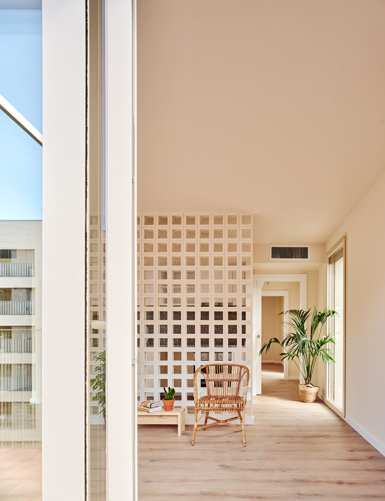 These terraces extend the living rooms to the outside through openings more than 5 m wide, blurring the boundary between “the house and the patio” and providing each home with a space to dream.