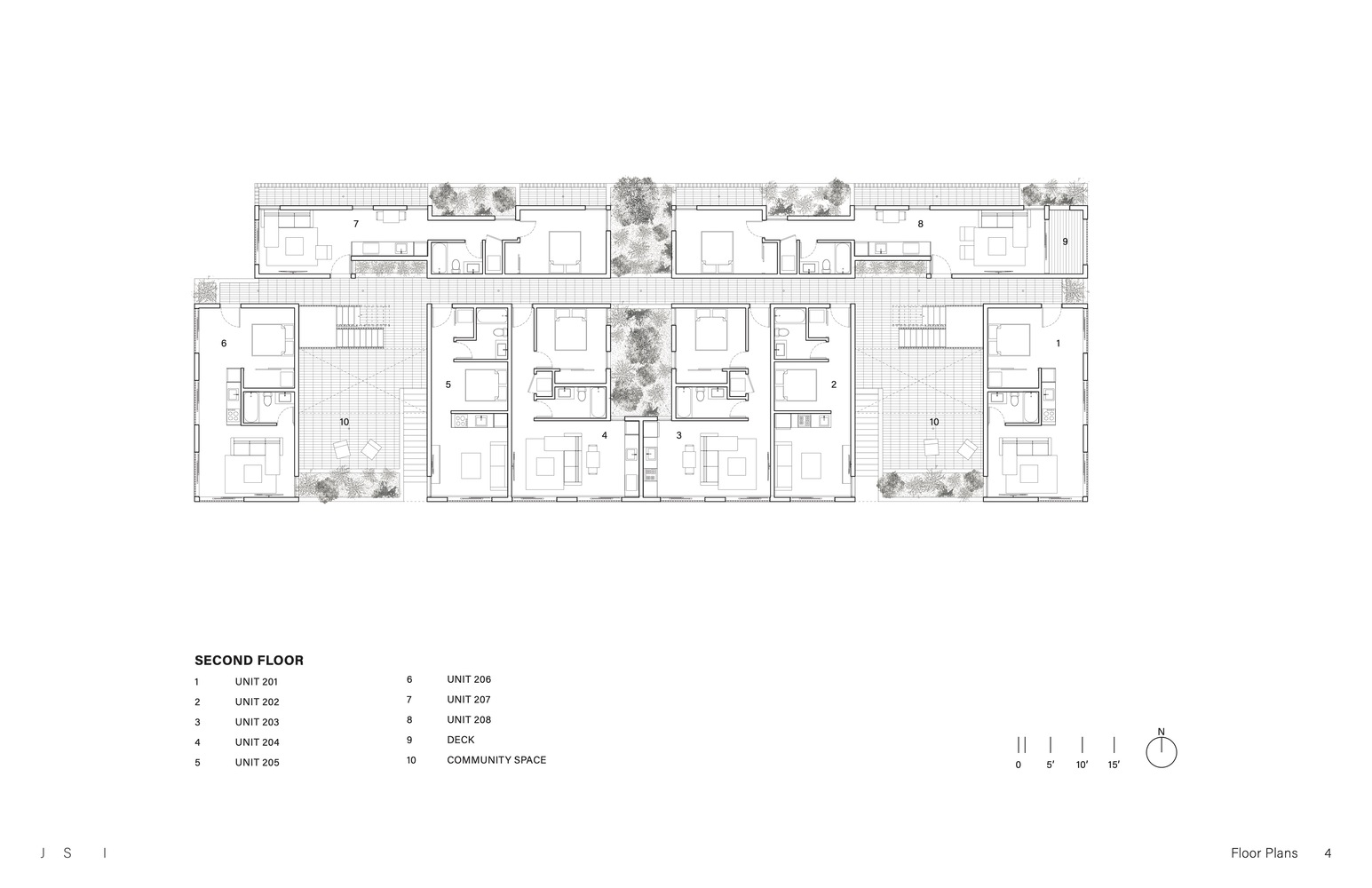 Taking advantage of San Diego's mild conditions, the project reinterprets outdoor circulation as an open system of relationships between units, neighbors, private spaces, and shared areas.