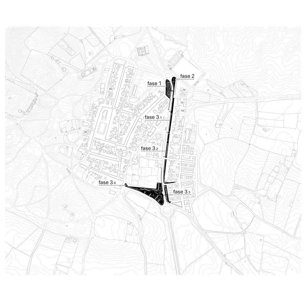 The intervention consists of creating a new border element for the square, connecting with the existing ones, and delimiting an open urban space integrated with the rest of San Silvestre.