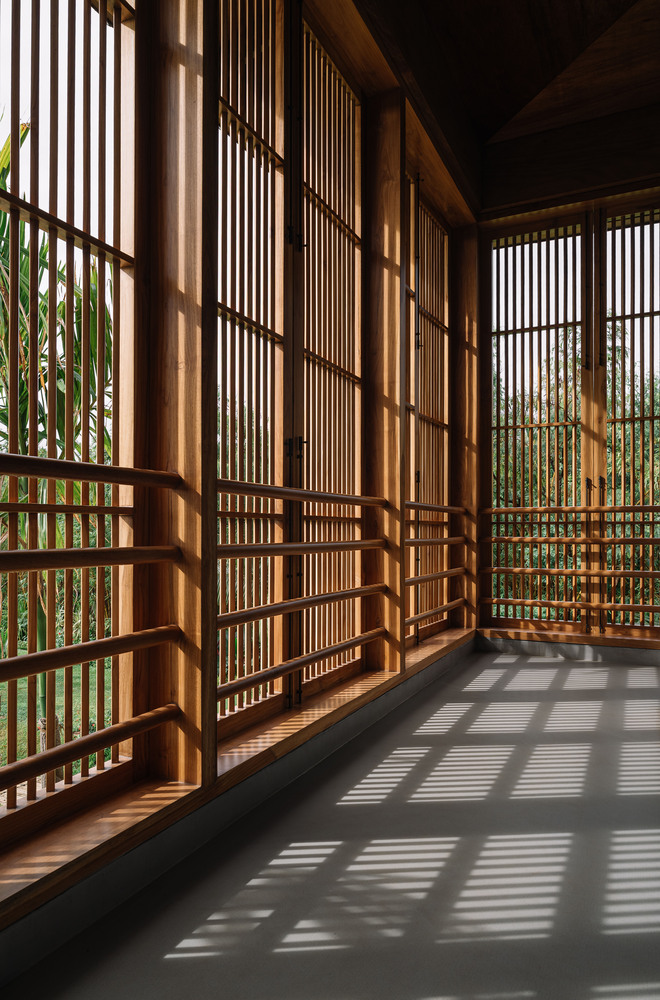 The screens act as a buffer, protecting the interior spaces of the home from Goa's fierce tropical sun and torrential monsoon.