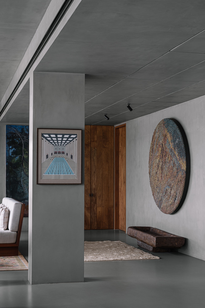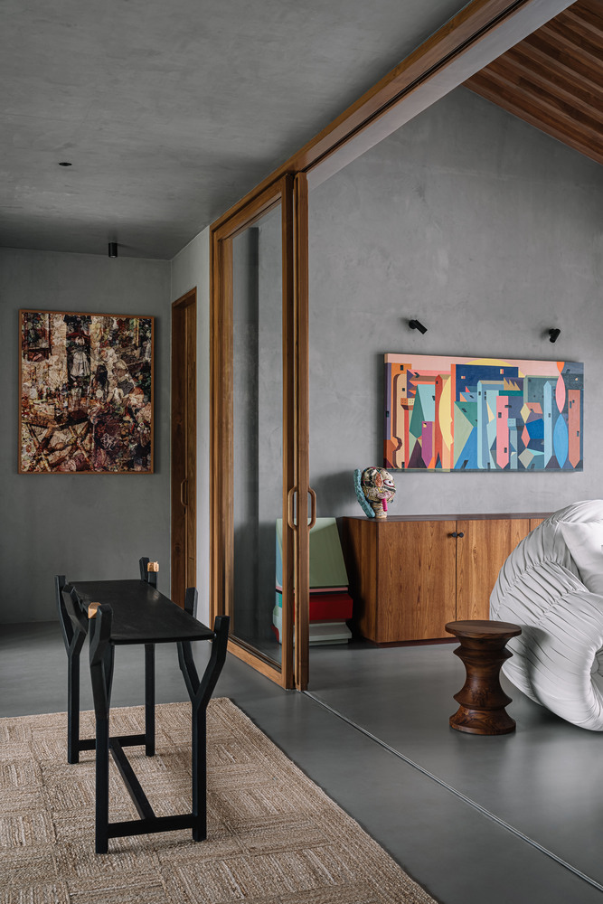 This interplay of mass and lightness, of opacity and permeability, defines the home's visual and functional core.