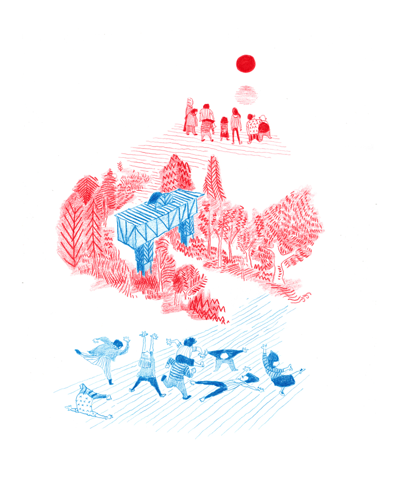By building a form of « proscenium », the installation will reveal the play that is played out around it every day, and question the roles of everyone involved.