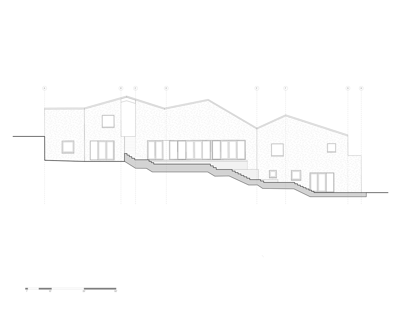 Ultimately, it relativizes the dominance of the monumental landscape of the river as the only a priori of the site and engages the occupants in a more active relationship with the exterior spaces, despite the perilous nature of the cliff.