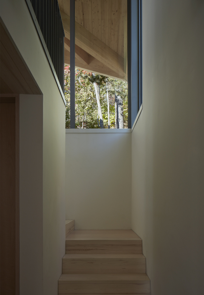 Conceived almost as a succession of small hills cascading down the cliff, the resulting volumetry of the circulation layout refers to the great landscape of the Charlevoix coast, where the organicity of the rural constructions of the last century is superimposed on the dizzying rusticity of the territory.