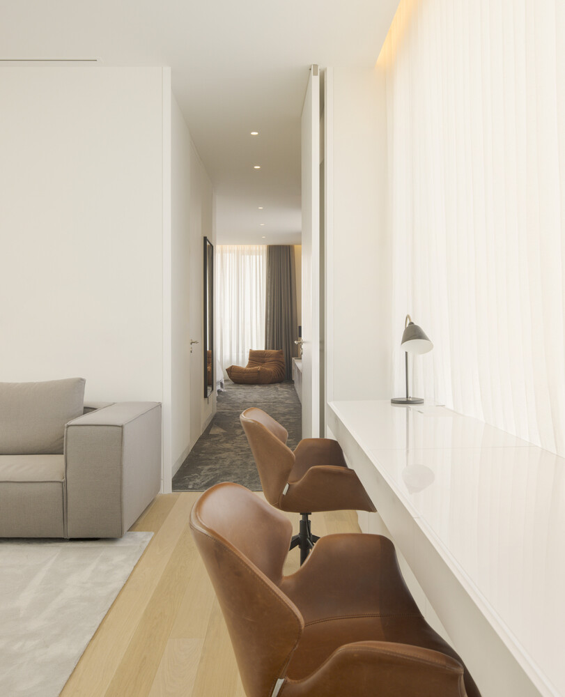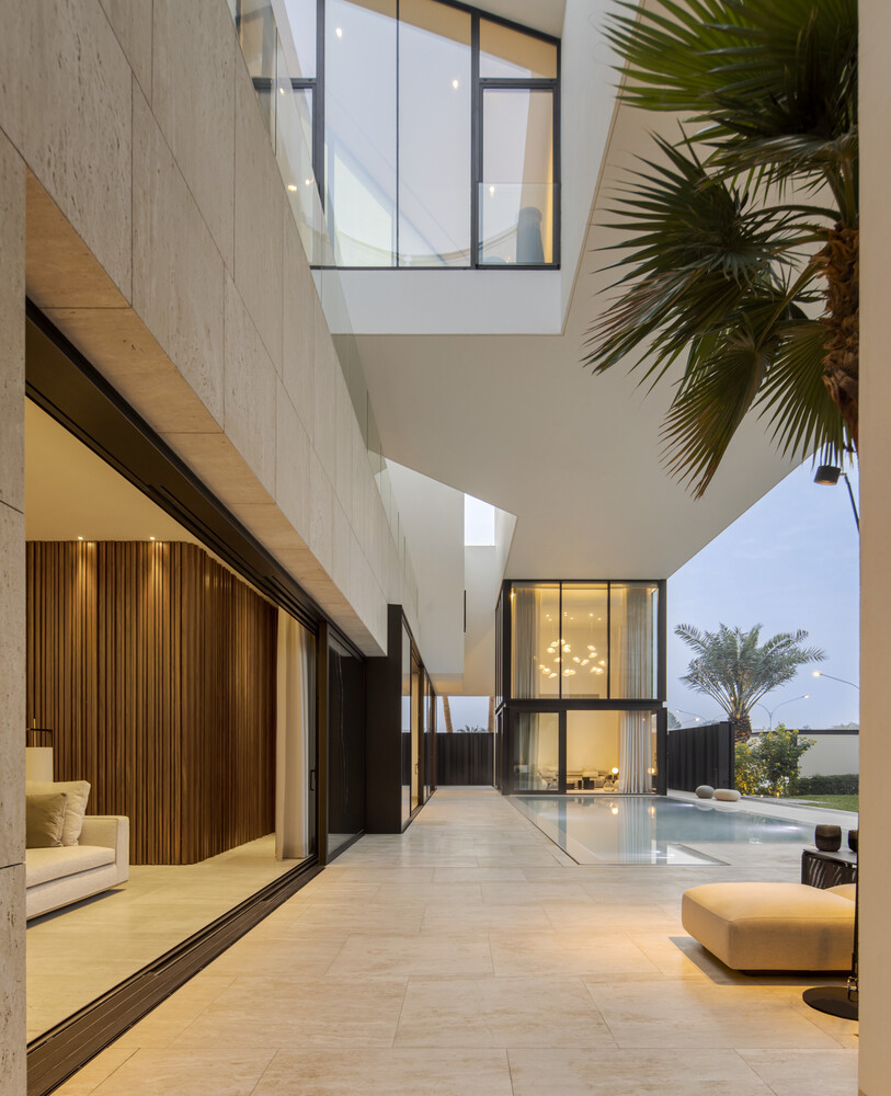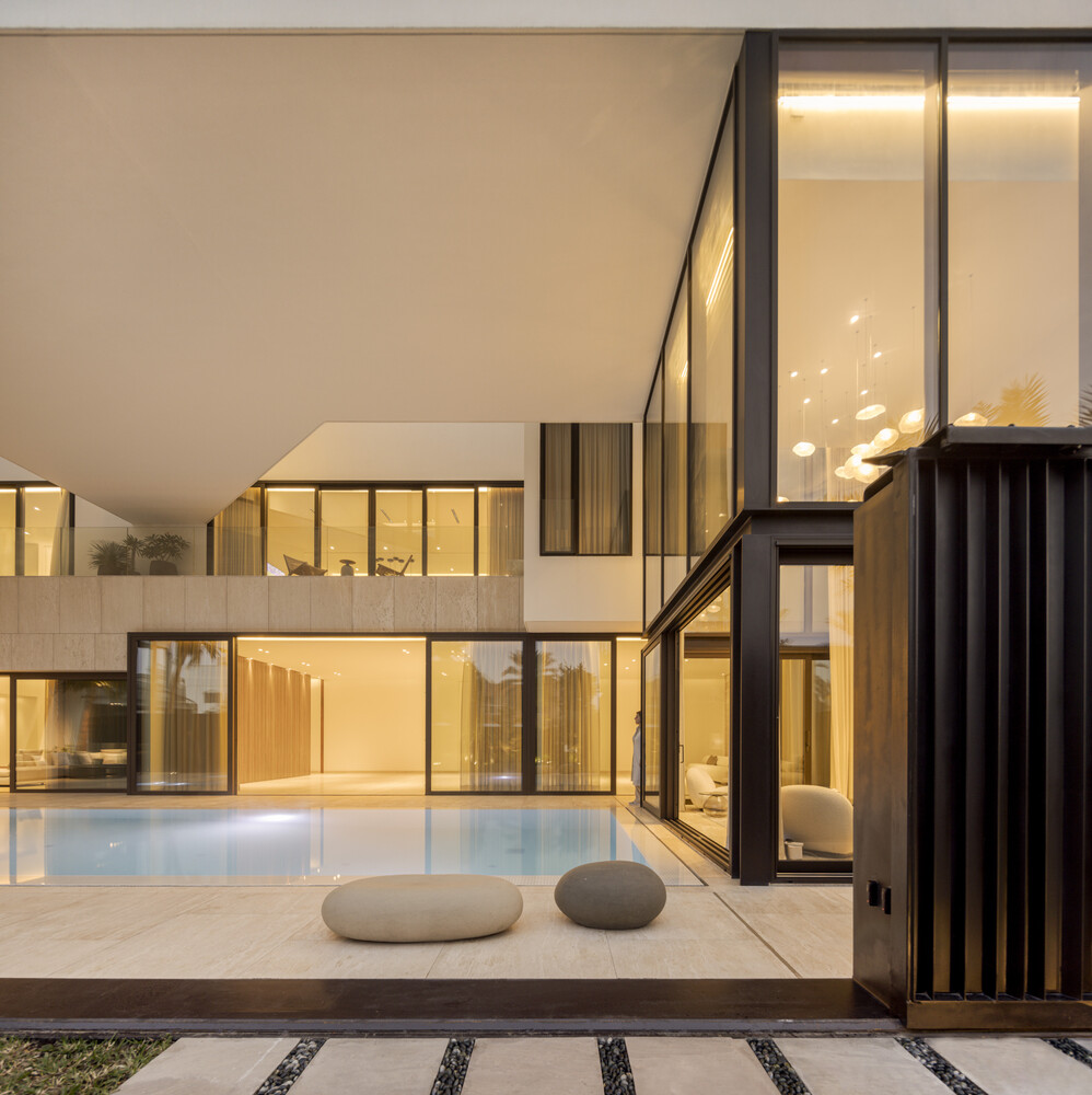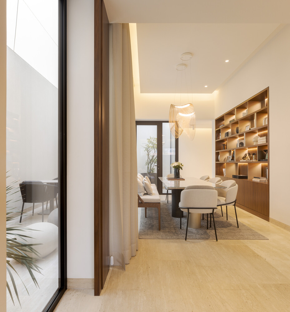 Glass walls and carefully designed transitions dissolve the boundaries between inside and outside, allowing the space to breathe and respond fluidly to the changing light and environmental conditions. In this way, the architecture adapts to the rhythm of daily life, continuously evolving with its context.