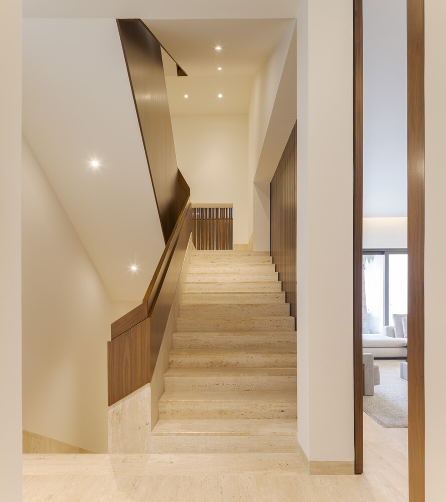 The upper floors are dedicated to the private realms of the house, with bedrooms, family rooms, and private terraces thoughtfully positioned to optimize views while maintaining privacy.