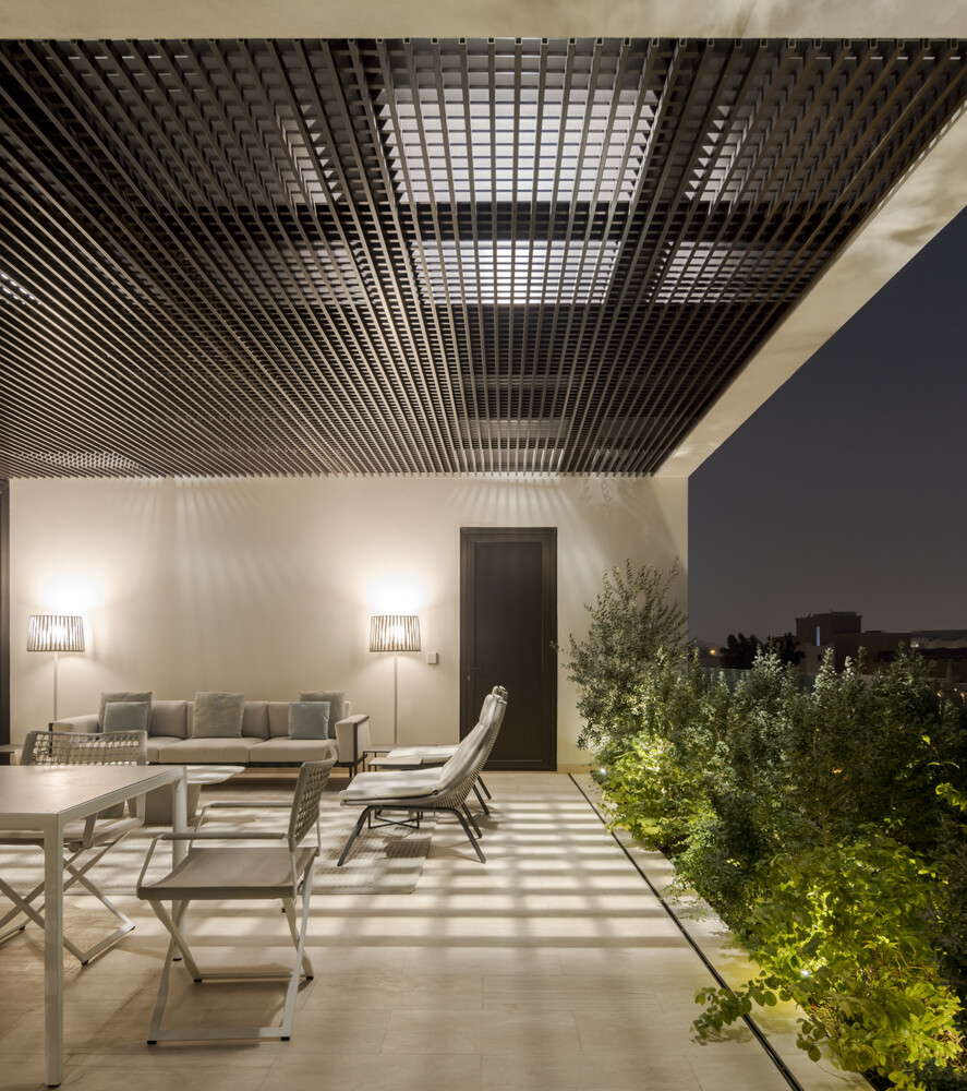 A large west-facing terrace, shaded for winter months, allows for comfortable outdoor living during Kuwait's mild seasons.