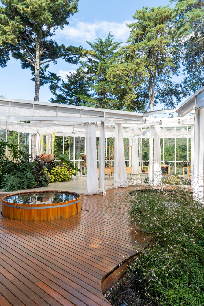 Hence, the strategy of creating a double envelope composed of an outer polycarbonate membrane that enhances the capture of sunlight in the interior, while guaranteeing good interior ventilation by opening 50% of the perimeter surface.